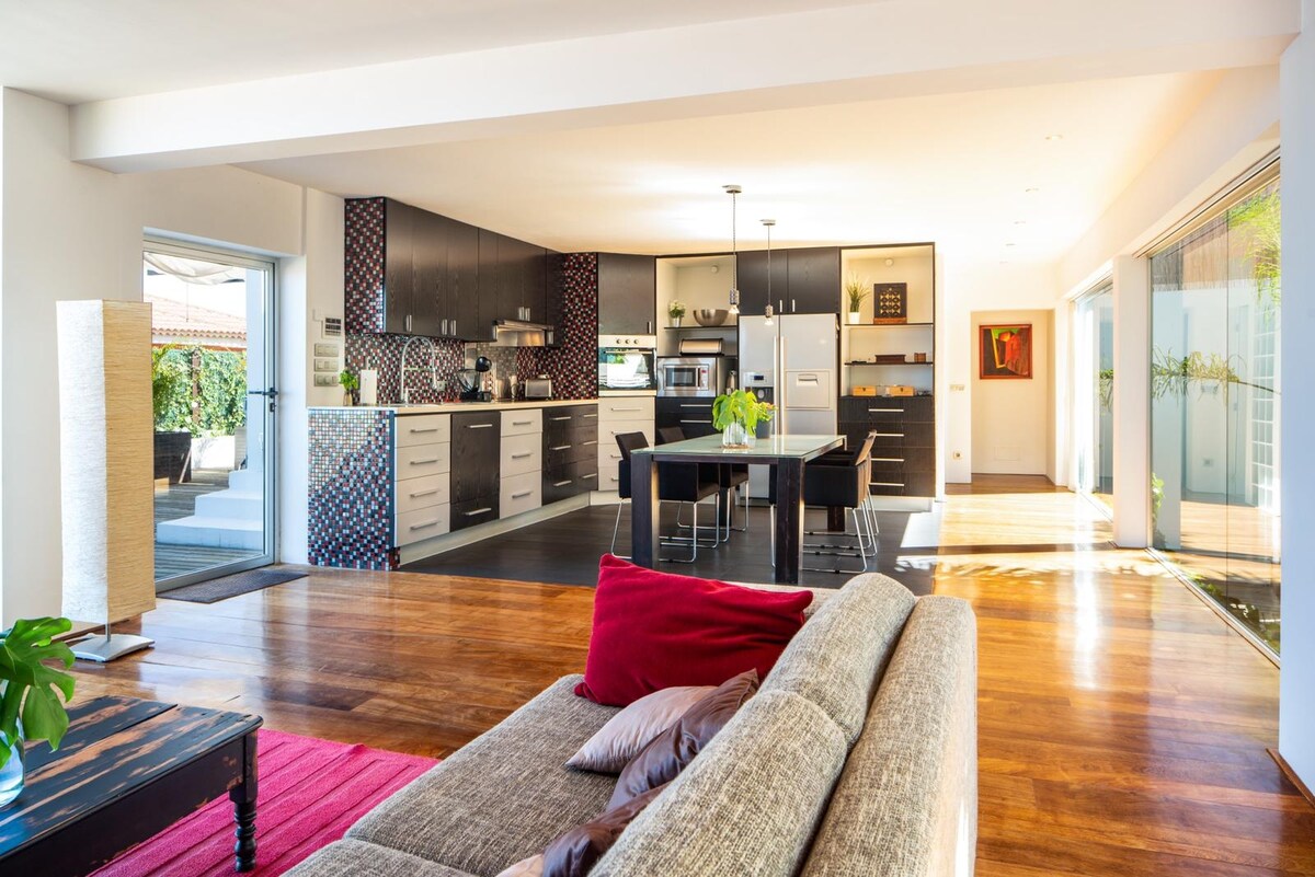 Ngumiti habang tinutuklas ang bawat sulok ng nakakaengganyong tuluyan sa unang palapag na ito. Sa loob, tangkilikin ang mga detalye ng arkitektura tulad ng pader na bato at ang kisame ng kahoy na katedral. Higit sa 70% ng pagkonsumo ng kuryente ay self - genererated salamat sa aming mga solar panel. Sustainable home :) Pagkatapos ay pumunta sa labas sa balkonahe para sa mga tanawin at likod - bahay, magpalamig sa lugar, at ngayon, isang maaliwalas na maliit na pool (2x2m) para sa pamamahinga, pagbibilad sa araw, at ginaw. Internet Fiber Optic 300mbps upang gumana at tamasahin ito. Si Eduardo at Daniel ay nasa iyong pagtatapon upang ayusin ang iyong mga pista opisyal at tumulong sa iyong pamamalagi. Huwag mag - alinlangan na sumulat sa amin! Mahirap makahanap ng isang naa - access na ari - arian, sa isang tradisyonal na Canarian construction house, na may mga de - kalidad na materyales, at bilang karagdagan sa pagiging nasa sentro ng bayan, nagbibigay ito ng pakiramdam ng pagiging rural, napapalibutan ng mga halaman at kung saan maririnig mo ang pag - awit ng mga ibon. Access at Terrace Sa pamamagitan ng panlabas na hagdanan ng bakal, aakyat ka sa unang palapag, kung saan makikita mo ang pribadong terrace, na may masayang at maingat na dekorasyon ay tumatanggap sa mga bisita sa kanilang tahanan. Mula dito, maaari mong makita ang abot - tanaw (sa malayo, ang dagat) at tamasahin ang mga kaaya - ayang sunset ng hilaga ng Tenerife. Patuloy kang sasamahan ng tunog ng mga ibon na namumugad sa paligid ng bahay at sa mga berdeng lugar na nakapaligid dito. Ang attic Mula sa pribadong terrace, maa - access mo ang penthouse na ito, na natatangi para sa istraktura at mga materyales nito. Sa diaphanous room bilang loft, naroon ang kusina at silid - kainan, sala, banyo, lugar ng trabaho at espasyo sa silid - tulugan. Ang talagang kapansin - pansin ay ang kalidad ng tradisyonal na konstruksyon at ang perpektong kumbinasyon ng mga materyales, isang metro na makapal na pader na bato, at ang bubong ng tradisyonal na bubong, na may gabled. Ang mga sahig at kisame ng mulberry wood, ay nagbibigay ng init sa lahat ng lugar na ganap na naayos na nag - iisip ng isang perpektong pamamalagi. Ang buong attic ay tumatanggap ng natural na liwanag :) Ang kusina Ang kusina ay kumpleto sa gamit na may refrigerator at freezer, microwave, induction hob, pampainit ng tubig at makinang panghugas, pati na rin ang lahat ng kinakailangang elemento, electric coffee maker at toaster, at mga komplemento tulad ng asin, asukal, langis o suka upang mula sa unang minuto maaari kang magsimula sa paghahanda ng pagkain at pagluluto sa paghahanda ng iyong sariling menu. Mayroon kang coffee machine at mga kapsula ng kagandahang - loob para simulan ang araw nang maayos. Kung gusto mong uminom ng tsaa, tandaan na magkakaroon din ng teapot para maihanda mo ang sa iyo! Ang lounge Ang living space, maaliwalas at mahusay na pinalamutian bilang ang natitirang bahagi ng bahay, ay may komportableng sofa, equipped bar furniture (na may mga inumin mula sa maraming sulok ng mundo, kabaitan mula sa aming mga bisita), Smart TV na may access sa Netflix at isang music device sa pamamagitan ng bluetooth. Banyo Sa banyo, may komportableng shower tray, at may hairdryer, bath towel, at set ng mga tuwalya para sa beach. Makakakita ka ng toilet paper, pati na rin ng sabon para sa lababo at shower gel. Kung sakaling kailangan mo ng mga karagdagang hanay ng mga tuwalya, kailangan mo lamang hilingin ito, at agad itong ilalagay sa iyong pagtatapon. Lingguhang bagong set ng higaan at mga tuwalya ay ihahatid kung sakaling lumampas ang iyong pamamalagi sa loob ng pitong araw. Pribadong hardin Sa pamamagitan ng pinto, mayroon kang pribado at eksklusibong lugar kung saan matatanaw ang kaaya - ayang hardin na nakapaligid sa buong property, na may nakakarelaks na lugar para sa pagpapahinga, kung saan maaari kang mag - sunbathe o uminom gamit ang kandila, o mag - enjoy lang sa pagbabasa. Sa mga lugar na ito, mayroon ka sa iyong pagtatapon ng shower sa labas para magpalamig na napapalibutan ng mga halaman. Internet at workspace o pagbabasa Ang penthouse ay may wifi coverage sa buong bahay, at ang lugar ng pag - aaral o trabaho ay may natural na liwanag na may walang kapantay na tanawin ng hardin sa pamamagitan ng bintana, mga libro sa Espanyol at mga magasin kung nais mong matuto o magbasa ng pagsasanay sa ating wika, o masiyahan lamang sa pagbabasa. Pahinga. XL bed At sa wakas, pinaka - mahalaga, ikaw ay magpahinga sa isang kama na nilagyan ng isang kalidad na kutson, 1.60 sa pamamagitan ng 2.00 metro, sapat na malaki upang matulog nang mapayapa hanggang sa susunod na araw. Mayroon kang mga independiyenteng reading light at aparador para mag - imbak ng mga damit, sapatos o anumang itinuturing mong bagahe. Para sa iba, mag - enjoy sa iyong pamamalagi sa isang lugar na inihanda nang may pag - iingat para ibahagi ang pinakamagandang karanasan sa bakasyon!!! Ang mga host, kasama ang aming Maltese Moma, ay nakatira sa unang palapag ng pangunahing bahay. Ang attic ay naa - access sa pamamagitan ng isang panlabas na hagdanan, ganap na independiyenteng. Ang paradahan at ang laundry area (washing machine at dryer) ay mga common space na available sa mga bisita sa lahat ng oras. Maa - access mo ang garahe sa pamamagitan ng awtomatikong pinto na may remote control na ibibigay namin sa iyo sa sandaling makauwi ka na:) Bilang karagdagan sa independiyenteng access sa attic sa pamamagitan ng panlabas na hagdanan, makikita mo ang pinto na nag - uugnay sa pribadong hardin kung saan maaari mong tangkilikin ang mga komportableng upuan at ang panlabas na shower upang magpalamig. Ang pangunahing bentahe ay na, paggalang sa privacy ng mga independiyenteng espasyo, mayroon ka sa amin sa iyong pagtatapon sa bahay, sa pamamagitan ng telepono o WhatsApp para sa anumang tanong, rekomendasyon, sorpresa na nais mong ihanda ang iyong partner o problema na maaaring lumabas sa panahon ng iyong pamamalag