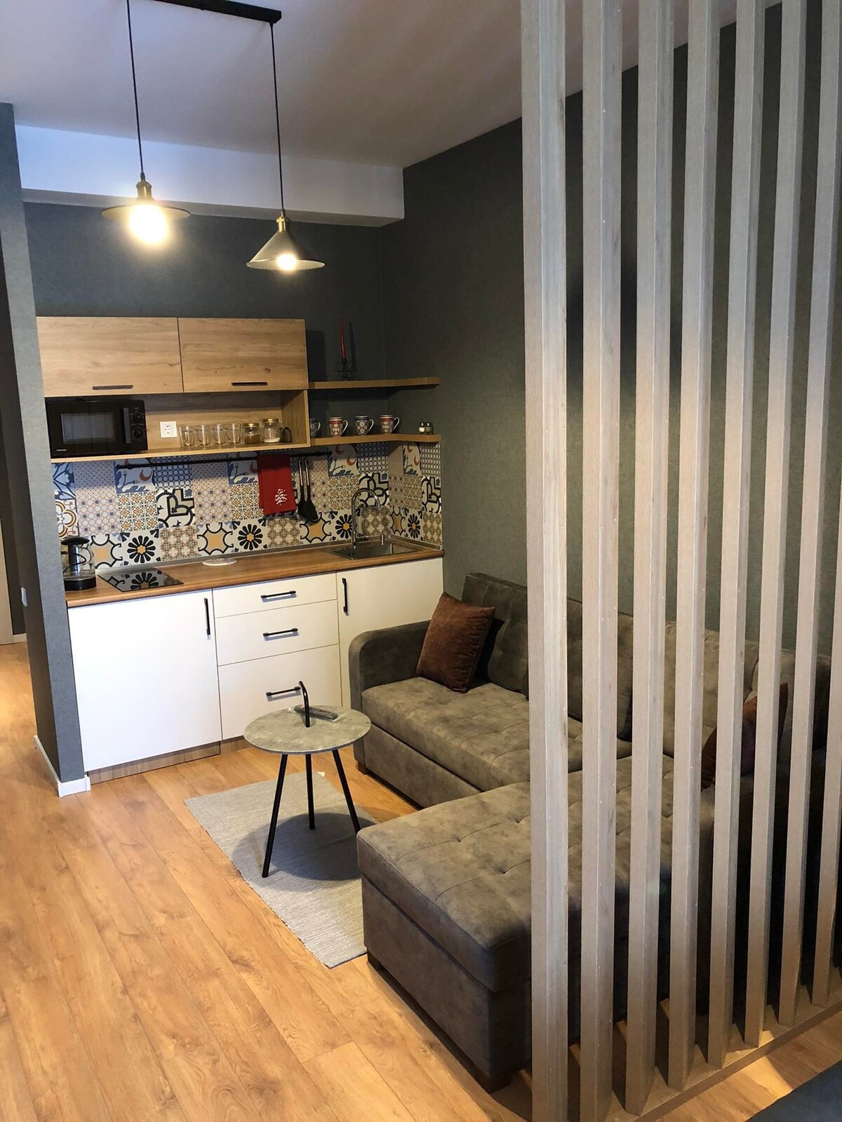 Maligayang pagdating sa studio sa Gudauri, Georgia, sa taas na 2200 metro! Ang sariwang pagkukumpuni na may kahoy at bato ay lumilikha ng komportableng kapaligiran sa bundok. Perpektong ilaw, mga functional na lugar - sala, silid - tulugan, kusina na may mga malalawak na bintana na nagbibigay ng natural na liwanag. Nag - aalok ang maaraw na bahagi ng mga nakamamanghang tanawin ng bundok. Malapit sa ski lift, mga tindahan at restawran - mainam para sa ski holiday. Pinagsasama ng studio na ito ang estilo, kaginhawaan at functionality para sa hindi malilimutang holiday.