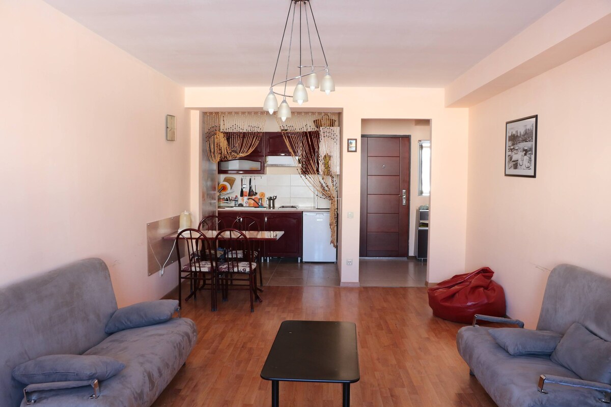 Cozy one bedroom apartment in New Gudauri, in Redco 4 Seasons complex, designed for 2-4 persons. Excellent location. 5 min walk to ski lifts. Ice rink right in front of the building. Close to the restaurants, fast food and shops. The apartment is equipped with all the necessary amenities. There is a double sofa bed in the living room. Free indoor parking and free ski locker available. pets not allowed