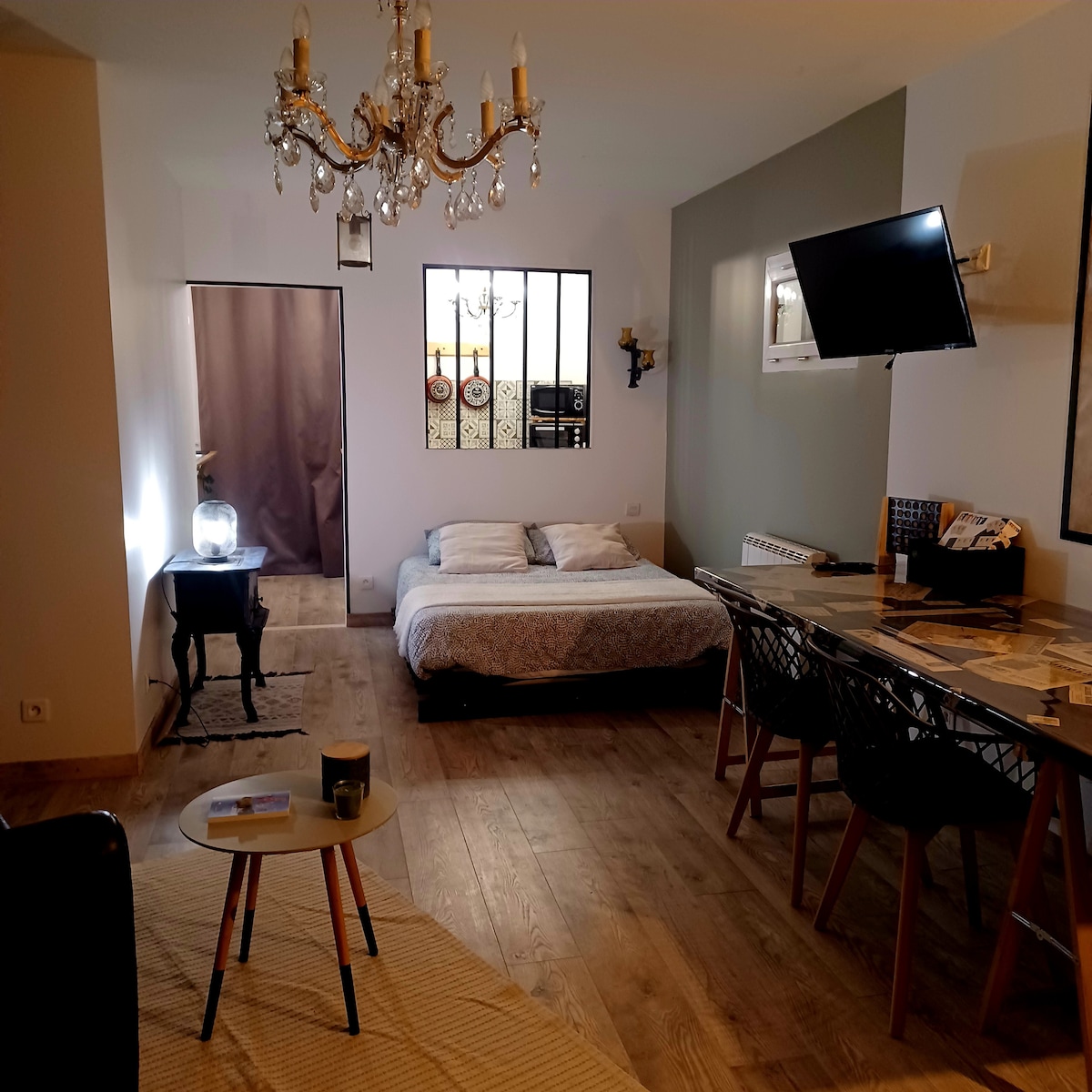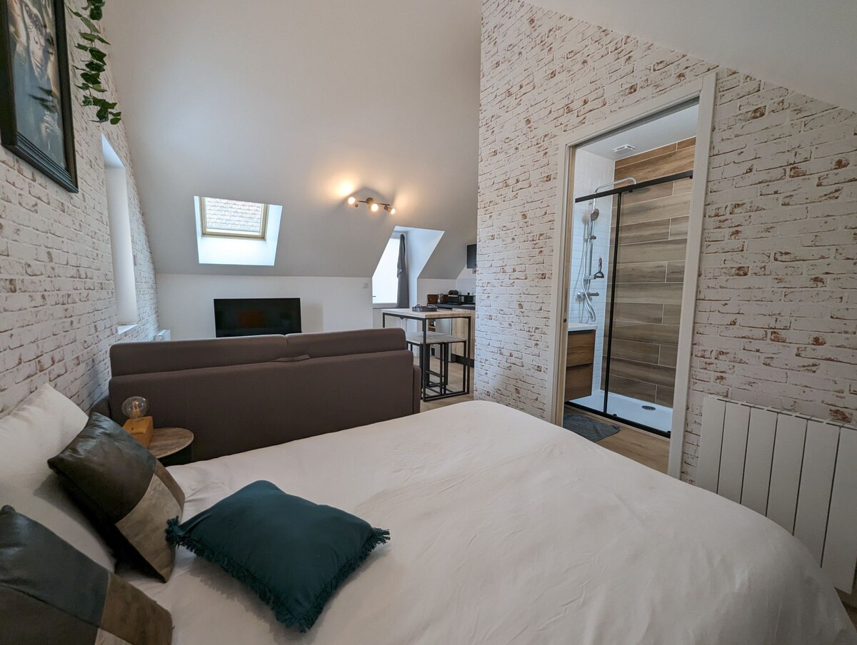 Naka - istilong at sentral na tuluyan na 31 sqm: 1 pangunahing kuwarto na may pinagsamang kusina (at clic - clac), 1 silid - tulugan at shower room. Rack ng bisikleta sa nakakonektang pasilyo ng pasukan (litrato) Sa gitna ng makasaysayang sentro at sentro ng lungsod, 250 metro mula sa aming Basilica, sa mga sangang - daan ng mga kapilya ng Paray, puwede kang maglakad - lakad sa mga kalye ng aming magandang lungsod. Malapit sa lahat ng amenidad, tahimik, sa ground floor, ang apartment na ito ay matatagpuan sa isang lumang gusali na puno ng kasaysayan.