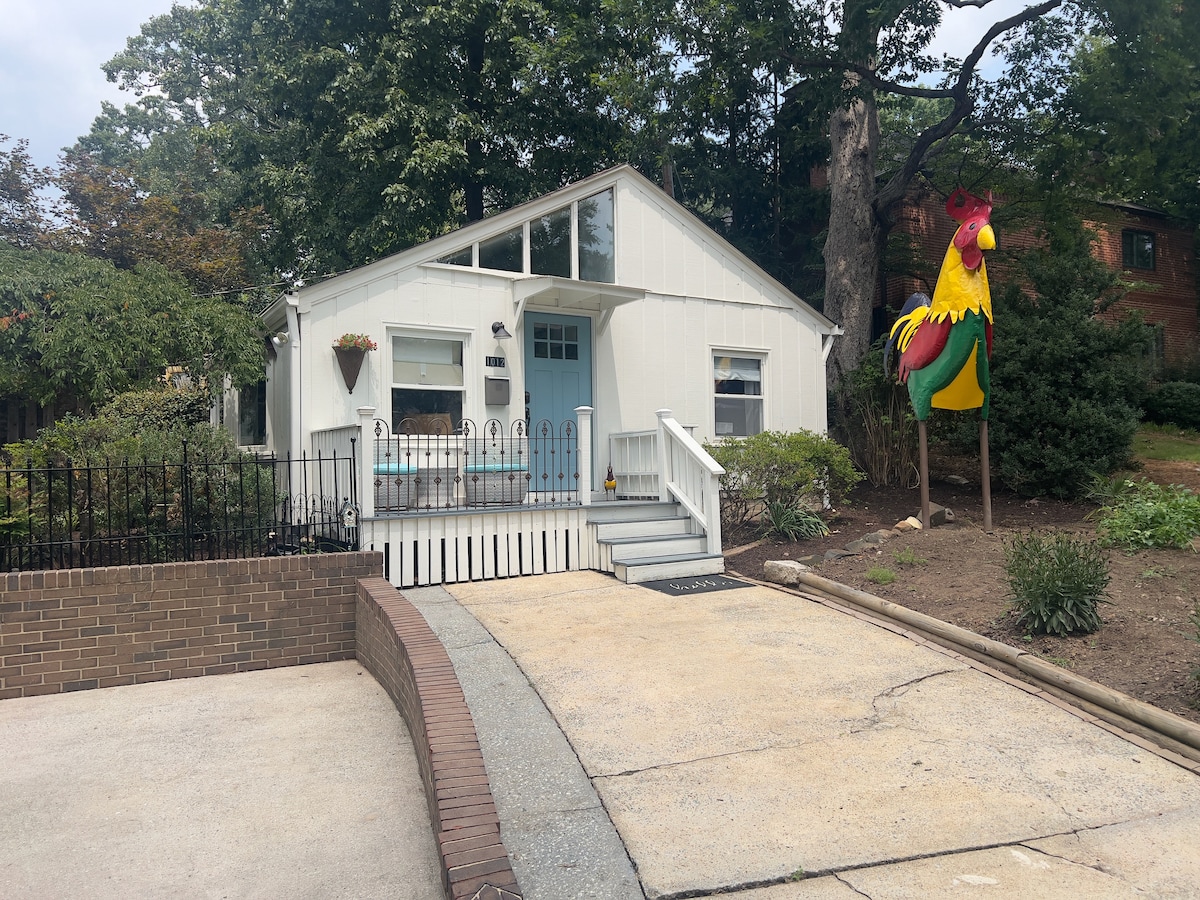 Isang munting bahay na itinayo ng beterano ang Urban Birdhouse sa madaling lakaran na kapitbahayan ng Mid‑Town/Idlewood sa Greensboro, 5 minuto lang ang layo sa Cone Hospital, Downtown Greensboro, UNCG, mga parke, at mga greenway trail. Kasama sa mga feature ang queen loft, mabilis na WiFi, maliit na kusina, pribadong deck, at paradahan sa driveway. Maglakad o magbisikleta papunta sa mga lokal na kapihan, pamilihan, at restawran. Mainam para sa alagang hayop at may mga simpleng alituntunin. Perpekto para sa mga nurse na naglalakbay, nagtatrabaho nang malayuan, nagbibisita para sa pangangalagang pangkalusugan, o mga bisitang gustong mamalagi sa natatanging panandaliang matutuluyan.