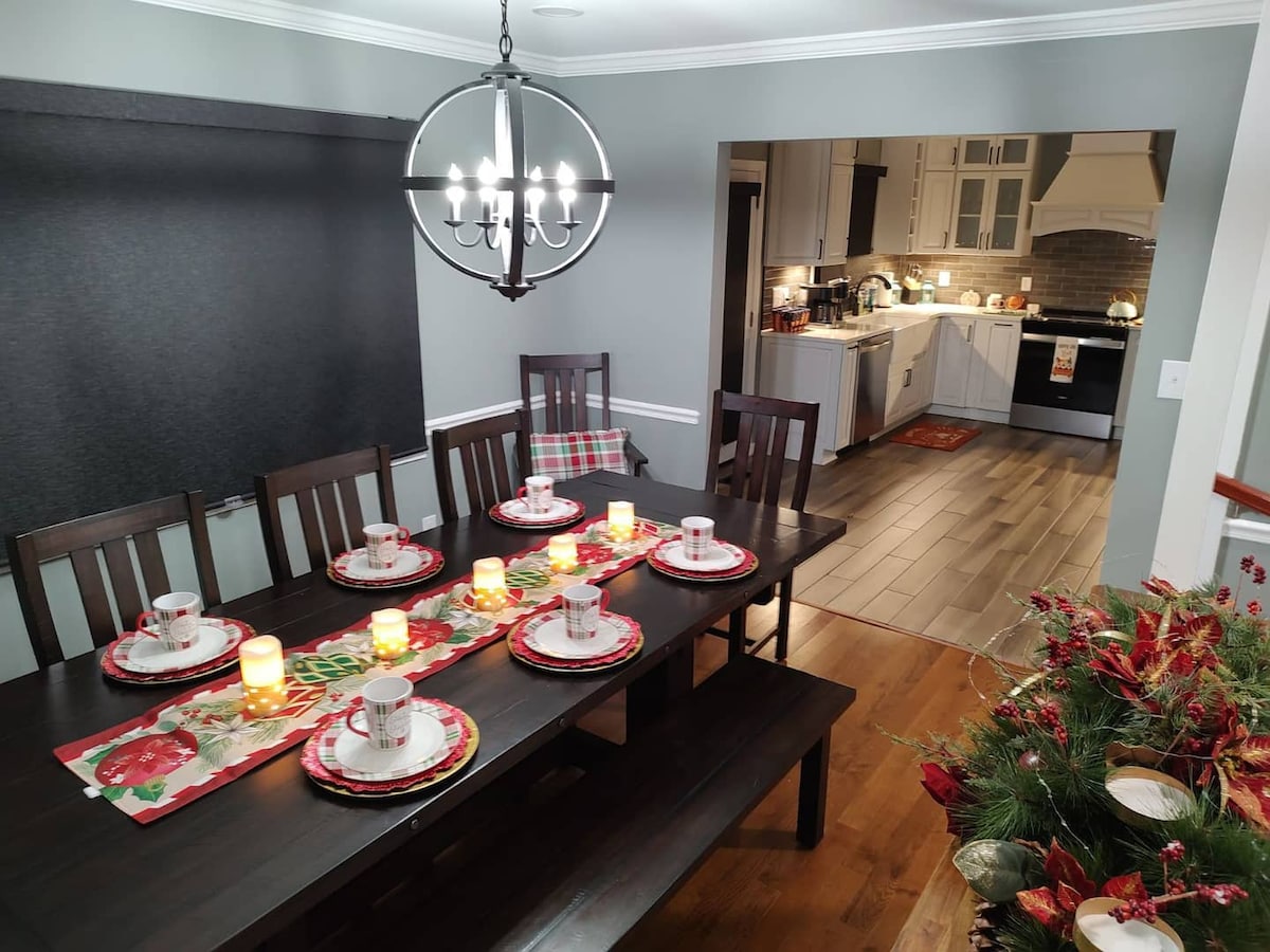 Mainam na lokasyon sa Greensboro! Ilang minuto lang mula sa pamimili, mga restawran, at Top Golf. Masiyahan sa hot tub, gym, o playet sa likod - bahay! Ang gym ay may Peloton bike, sauna, massage chair, treadmill, at bench + dumbbells Ang tuluyang ito ay may 3 silid - tulugan lahat na may sariling pribadong buong banyo! Unang Kuwarto: King bed + pribadong en - suite na may walk in shower Silid - tulugan 2: Buong higaan + pribadong en - suite na may tub/shower combo Ika -3 Kuwarto: Queen bed + pribadong en - suite na may tub/shower combo