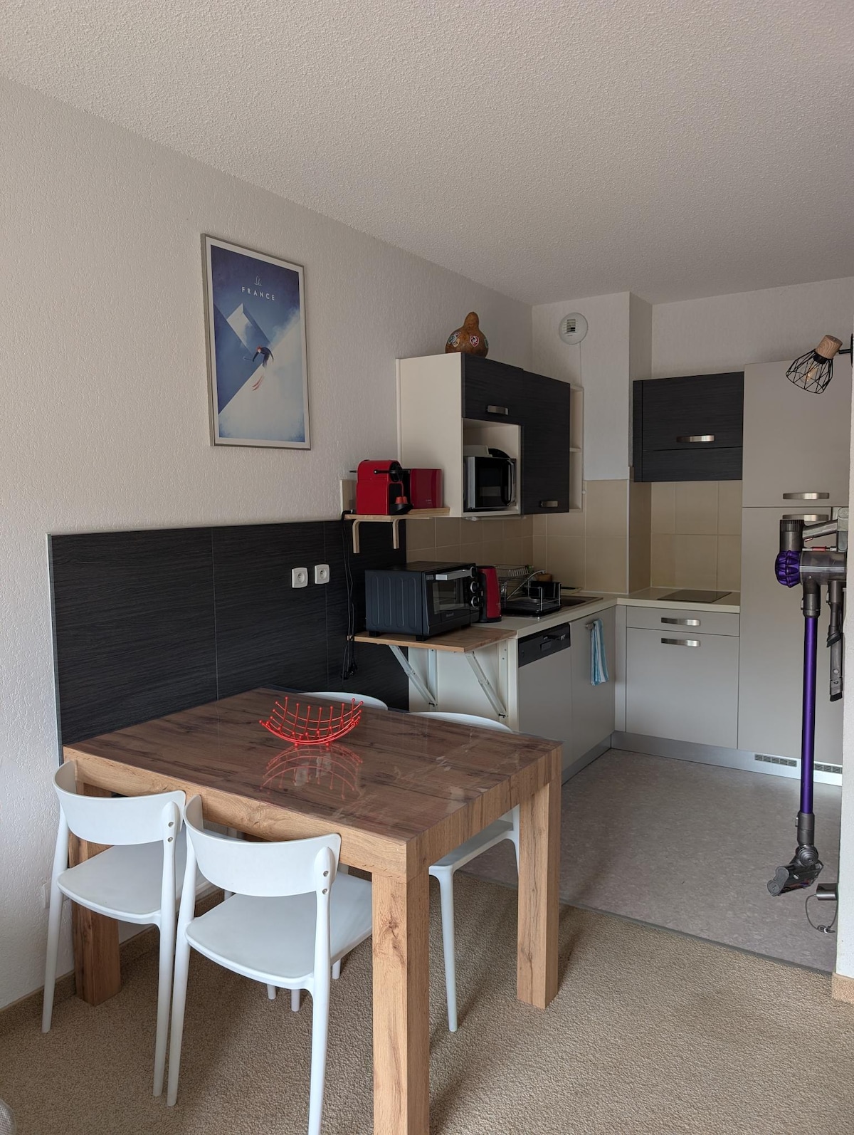 Komportableng 2 kuwarto (36m²) sa paanan ng mga dalisdis, saradong paradahan sa elevator, direktang access sa apartment, silid-tulugan na may double bed na 140X190 + 90X190 heater + malaking aparador, sala na may 140X190 sofa bed, Nespresso coffee, kettle, toaster, oven, pinagsamang microwave, dishwasher, vitro plate, refrigerator, freezer, raclette, fondue, hair dryer, malaking terrace na may kasamang kagamitan (16m²) na may napakagandang tanawin sa timog, ski locker, heated swimming pool sa tirahan (bukas ayon sa petsa).