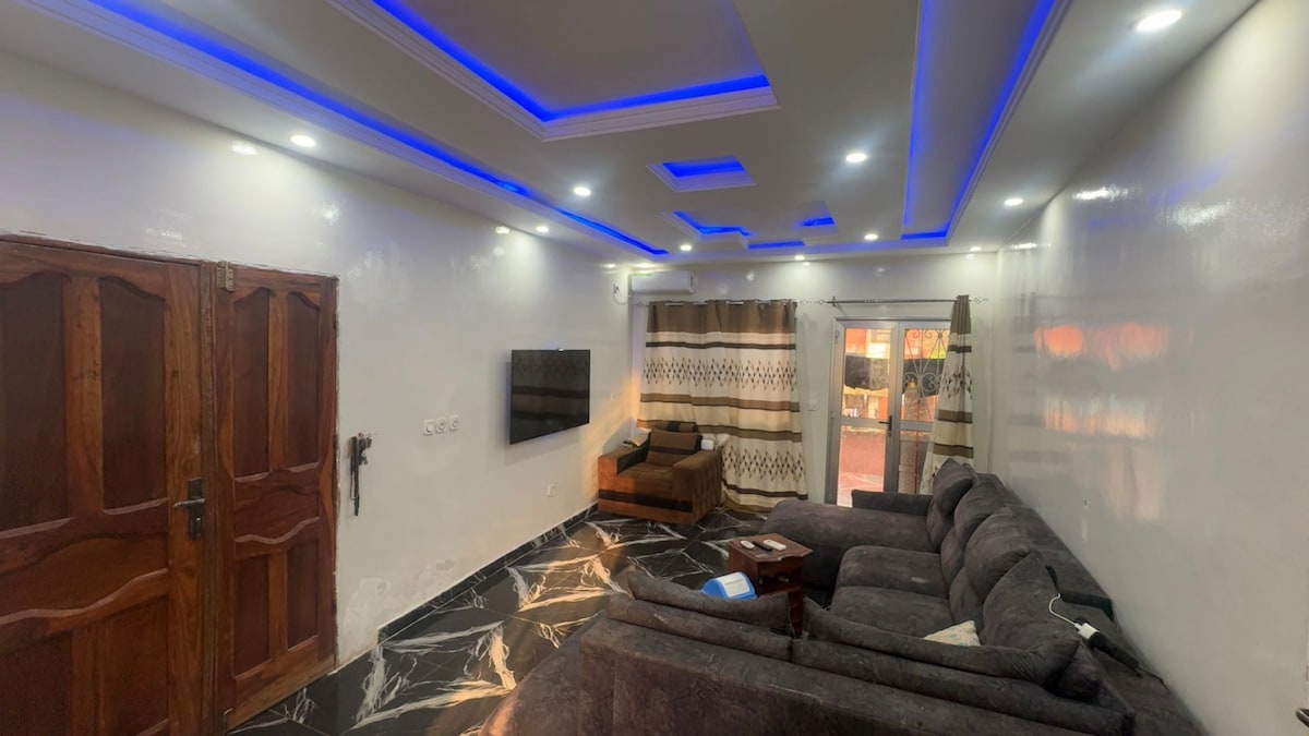Appartement à 10 min de l’Aéroport – Confort & Élégance. Entièrement rénové, ce logement moderne et lumineux vous accueille à 10 minutes de l’aéroport international de Conakry Gbessia et à 500 m de la plage Bénarès. Profitez d’une localisation stratégique, d’une grande cour fermée sécurisée et d’un confort moderne avec climatisation, télévision avec abonnement Canal, literie haut de gamme et cuisine équipée. Cosy et chic, idéal pour un voyage d’affaires ou une escapade en famille.