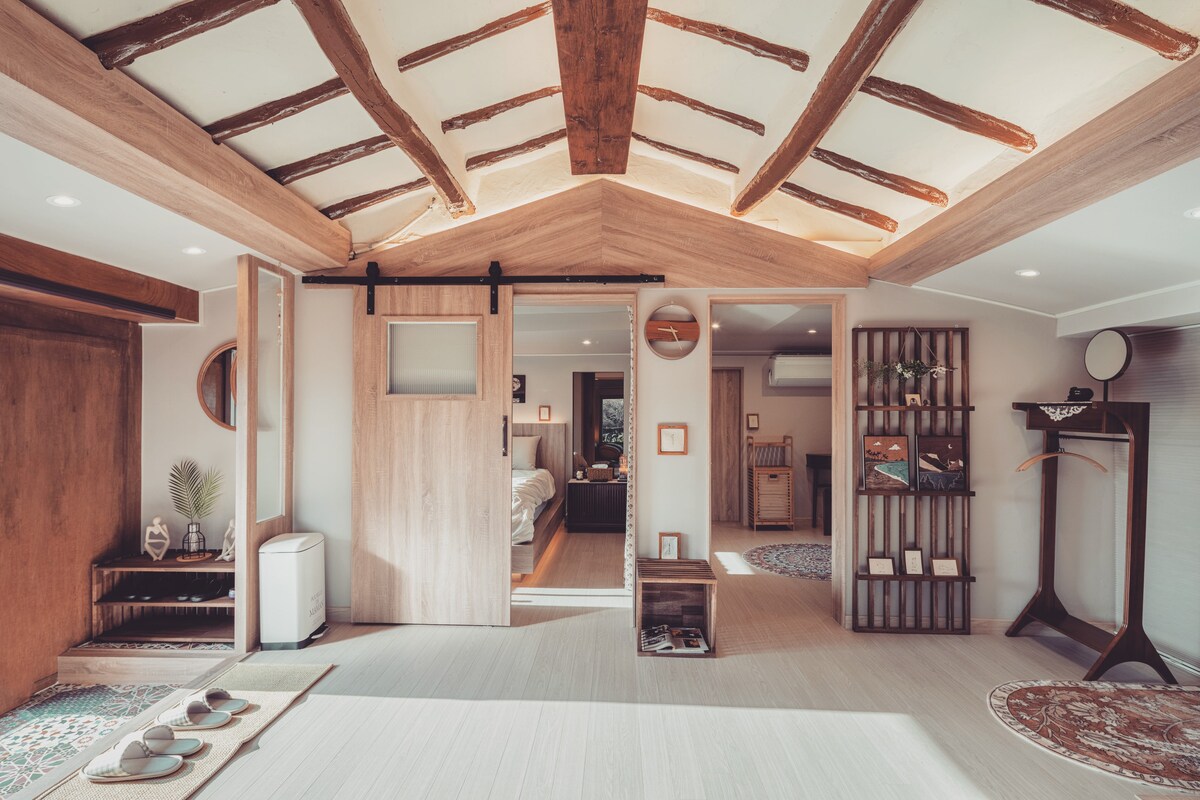 Buwan; isang maliwanag na liwanag ng buwan Matatagpuan sa Handong, isang maliit na nayon sa silangan ng Jeju Isa itong tradisyonal na cabin sa Jeju na mahigit 100 taong gulang na. Tahimik ang hugis ng farmhouse. Na - remodel na ito para maramdaman mo ito. ⠀ Jeju gifted stone walls, sunshine, wind, and bamboo Palagi ka naming susubukan na gawing komportable ang 'pahinga' sa pinagsamang tuluyan. ⠀ May☆ pribadong paradahan ang Miwiwol sa harap ng pasukan handa na.☆ ⠀ Inner □ street (kuwarto at sala) Sa labas □ ng kalye (kusina) □ Jacuzzi room (libreng paggamit nang hindi nag - aalala tungkol sa mga bug sa 4 na panahon) Bullmung □ Zone □ Jeju Stonewall kakahuyan ng□ kawayan ⠀ Ganito pinaghiwalay ang bawat tuluyan. Isang lugar kung saan mararamdaman mo ang hugis ng tradisyonal na lumang bahay sa Jeju Pangasiwaan ang pagiging sensitibo ni Jeju ^^ 17, Handong - ro 2 - gil, Gujwa - eup, Jeju - si