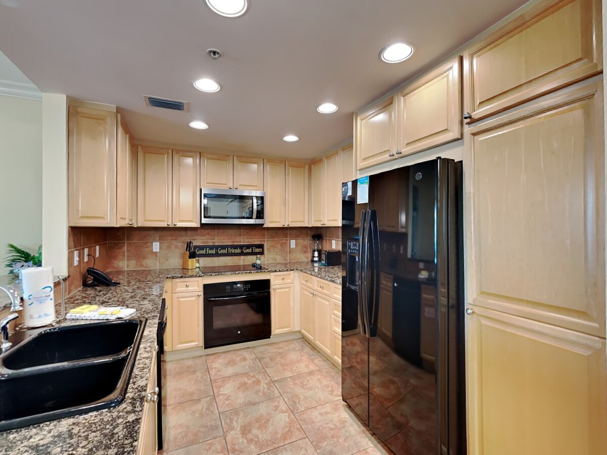 Isang pangarap ang bagong palamutiang Caribe condo! Nasa gusali B sa ika-2 palapag ang condo na ito (ika-3 dahil nasa ibaba ang parking) at kayang magpatulog nang komportable ang 8 tao. Mayroon ng lahat ng app tulad ng ESPN at Netflix ang bagong 65 inch tv. May bagong refrigerator at lahat ng kagamitan at kasangkapan sa pagluluto na kailangan sa kusinang ito! May mga tennis court, pool, hot tub, arcade, golf, marina, at lazy river at mga cabana sa resort. Isang paraiso ito para sa mga mahilig magbangka! May kasama ring 2 parking pass at karagdagang parking kung kinakailangan ang unit na ito.