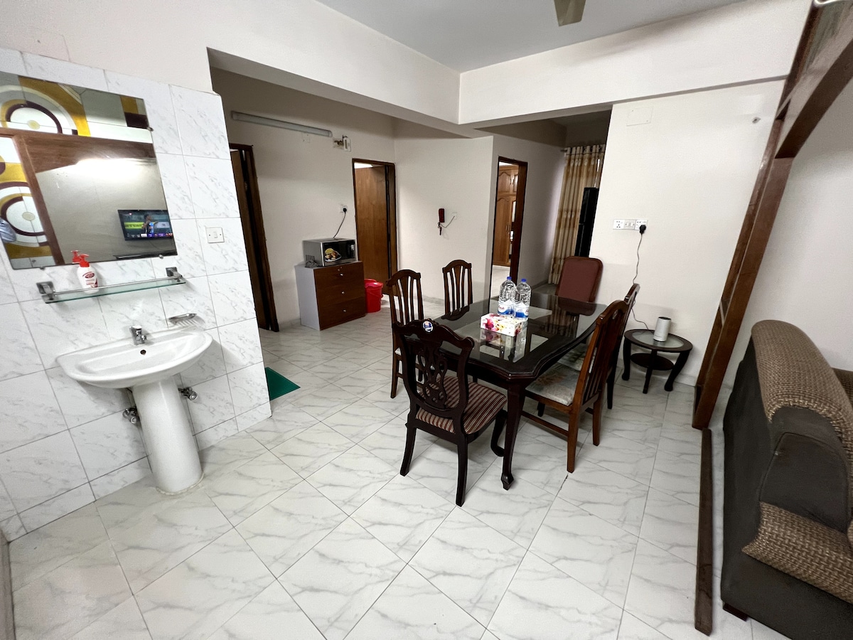 Ang naka - istilong lugar na matutuluyan na ito ay perpekto para sa pamilya (4 na tao) na bumibiyahe sa Bangladesh mula sa ibang bansa. Tangkilikin ang kagandahan na may kumpletong modernong apartment. Narito ang ilang highlight: Matatagpuan ito sa gitna ng Uttara, 20 minutong biyahe mula sa paliparan. Dalawang maluwang na silid - tulugan (queen size bed, cabinet, office desk) na may mga nakakonektang banyo, sala, tv room, at dining space. Mayroon itong tv, refrigerator, washer, microwave, at normal na oven. Ganap itong naka - air condition. Malapit ang mga tindahan at restawran.