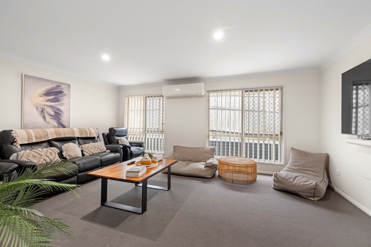 Renovated for an enjoyable experience! Relax with your family at this peaceful property to enjoy a local lifestyle on a safe, quiet street only 4 minutes (2km) from the best food & lifestyle attractions pictured. The home has everything you need & more, including a movie room (with Netflix, Stan, Disney, & Amazon Prime) fully equipped kitchen, spacious laundry, 3 secure car spaces & fast WiFi. Feel well looked after with the thoughtful touches & inclusions we have provided for you.