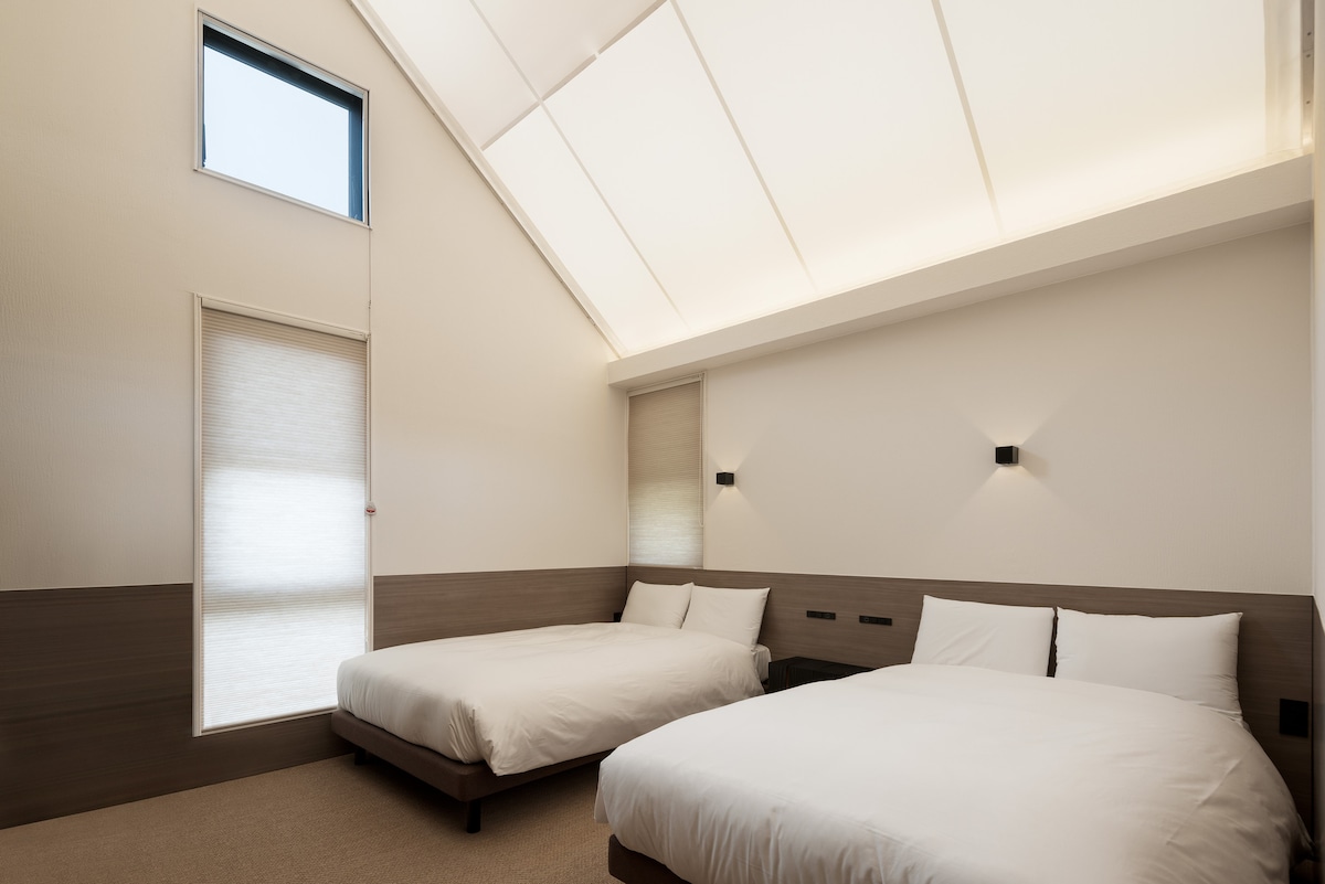 Pribadong villa ang Forest Seasons HIKARI tahimik na matatagpuan sa kagubatan ng Karuizawa. Puno ng malambot na natural na liwanag ang loob ng bahay na may gable, na may malalambing na kulay ng kahoy at mga Nordic na vintage na muwebles. Dalawang king-size na higaan (1.8 m) na angkop para sa mga magkasintahan o pamilya. Magandang mag‑relax sa pribadong hardin at kahoy na deck. May mga BBQ, fire pit, at open‑air bath. Kapag taglamig, nagbibigay ng banayad na init ang kalan na gumagamit ng pellet. May nakatalagang staff na nagbibigay ng suporta anumang oras, na laging iginagalang ang privacy.