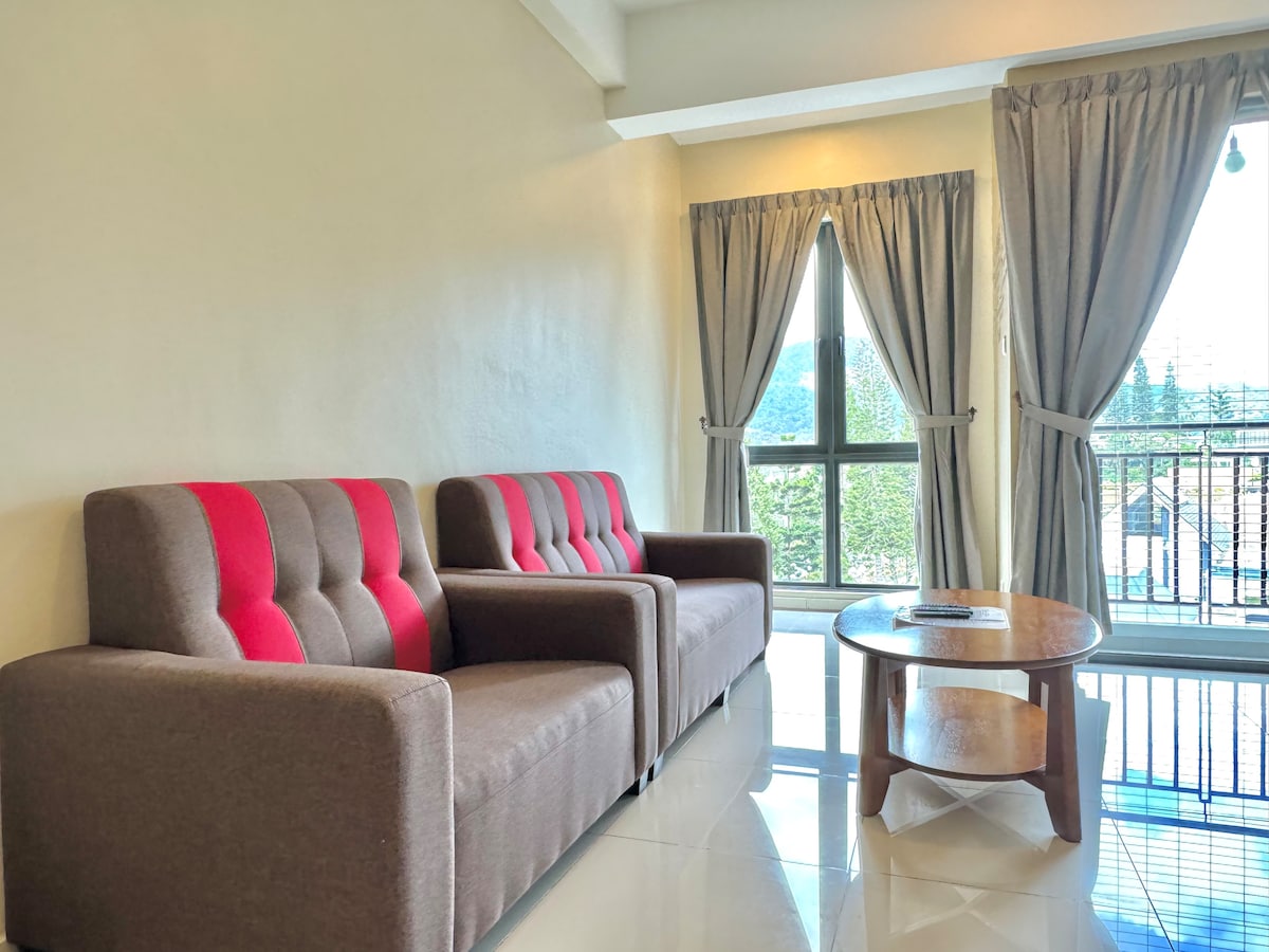 Tranquil Retreat sa Cameron Highlands Nag - aalok ang aming maluwang na condominium ng tahimik na bakasyunan na napapalibutan ng maaliwalas na halaman at malamig at nakakapreskong hangin. Tangkilikin ang kaginhawaan ng may gate at bantay na paradahan - na matatagpuan nang direkta mula sa iyong pribadong balkonahe para sa dagdag na kapanatagan ng isip. Tumakas papunta sa Cameron Highlands, kung saan maaliwalas ang hangin at palaging nakakaengganyo ang kapaligiran. Ito ang perpektong bakasyunan mula sa tropikal na init - isang lugar para makapagpahinga, makapag - recharge, at maranasan ang kagandahan ng komportableng pamumuhay sa highland