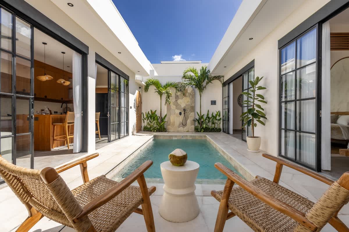 Modernong villa na may 1 kuwarto at pribadong pool sa prime Ungasan: • Chic na kuwarto na may designer lighting at mga pader na yari sa salamin • En-suite na banyo na may mga premium na amenidad • Pribadong pool na may kumikislap na ilaw at luntiang harding tropikal • Lounge na may mga hinabing pendant lamp • Kusina at kainan na kumpleto ang kagamitan • 300 Mbps Wi - Fi • Kasama ang paglilinis araw-araw gamit ang mga bagong tuwalya at linen • Netflix, PS5, mga amenidad para sa sanggol kapag hiniling • Concierge para sa pagrenta ng scooter, mga tour, at marami pang iba • Puwedeng magsama ng alagang hayop • May refund na IDR 500,000 na deposito