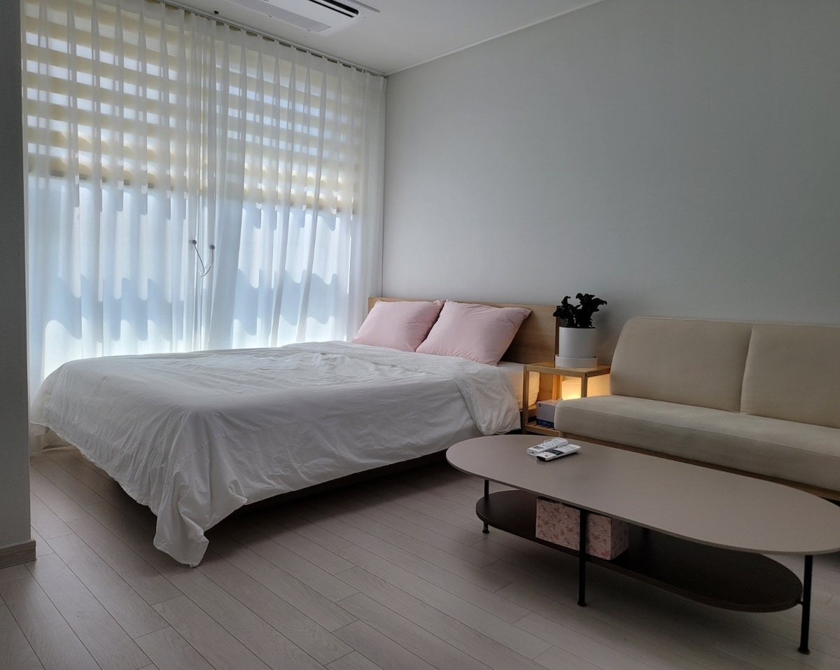 5 minuto sa pamamagitan ng taxi mula sa U Square Bus Terminal, Para lang sa mga babaeng bisita na may tahimik at komportableng kapaligiran Ito ay isang mainit na lugar na matatagpuan sa Unam - dong. Una sa lahat, may sentro ng sining pangkultura at bus stop malapit sa tuluyan, kaya malaking kalamangan ang kaginhawaan. Para matulungan ang mga bisita na maging komportable sa panahon ng kanilang pamamalagi, gumawa kami ng komportableng Hungarian goose down bedding at kutson para matulungan silang makapagpahinga. Matatagpuan ito sa sentro ng lungsod, pero ginagawa ito para manatiling tahimik at komportable habang ginagamit mo ito. Bukod pa rito, para sa kaligtasan ng aming mga bisita, may naka - install na CCTV sa harap ng pasukan, kaya binibigyang - pansin namin ang kaligtasan at seguridad. Inirerekomenda namin na ang mga gusto mong magpahinga sa isang tahimik, malinis, at maayos na lugar para magpagaling sa aming tuluyan.☺️
