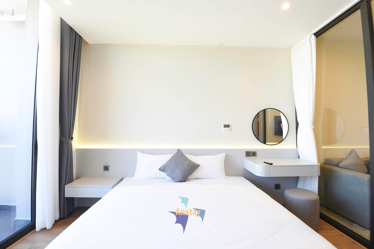 Ito ay isang magandang apartment na matatagpuan sa gusaling A La Carte Ha Long, ang pinakamataas na gusali na nasa tabi mismo ng beach. Isang perpektong lugar para makapagpahinga nang may tanawin ng dagat. Isang produktibong workspace na may desk, WiFi, at mga kumpletong amenidad sa apartment. Madali mong maaabot ang mga sumusunod na lokasyon: • 1 minutong lakad papunta sa beach. • 5 minutong biyahe papunta sa night market. • 10 minutong biyahe papunta sa sentro ng lungsod, Quang Ninh Museum .... Hindi kasama sa presyo ng kuwarto ang almusal, swimming pool, o mga bayarin sa gym.