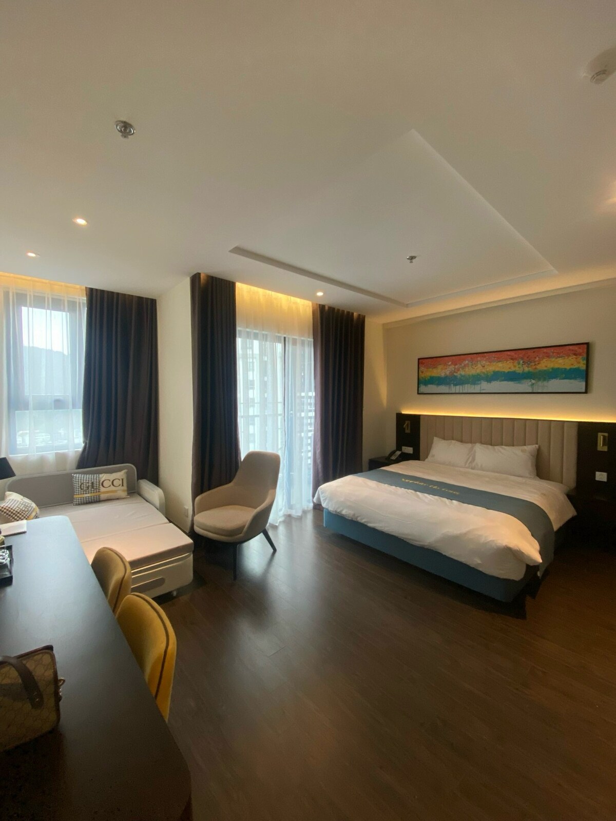 Located next to InterContinental Halong Bay Resort, this 45 SQM fully furnished Studio with breathtaking seaview of Ha Long Bay from the high floor. It's very convenient with full services for relaxing & entertainment & food at exclusive rate for guests staying here and perfectly on the beautiful beach. 🏊♂️Please note that room rate does not include pool, jacuzzi, gym, spa & breakfast which are managed by the 5* à la carte hotel. You can buy tickets at the reception at the resident rate.
