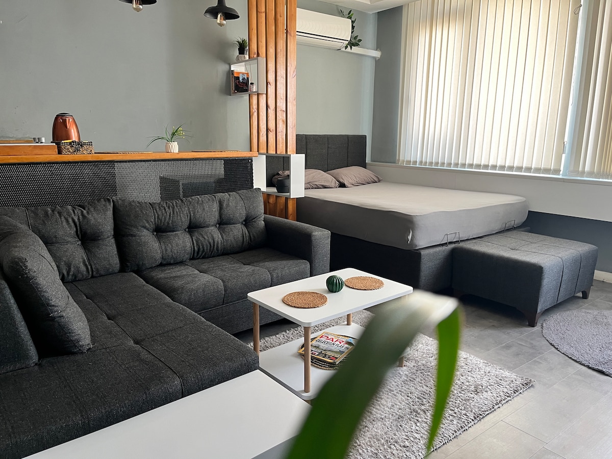 Ang apartment na ito ay idinisenyo sa isang minimalist na konsepto. Ito ay nasa tapat mismo ng Hadrian's Gate, ang simbolo ng Antalya, na may tanawin ng lumang bayan at dagat. Ang lahat ng libangan, bar, club, restaurant, shopping center at dagat ay nasa walking distance.