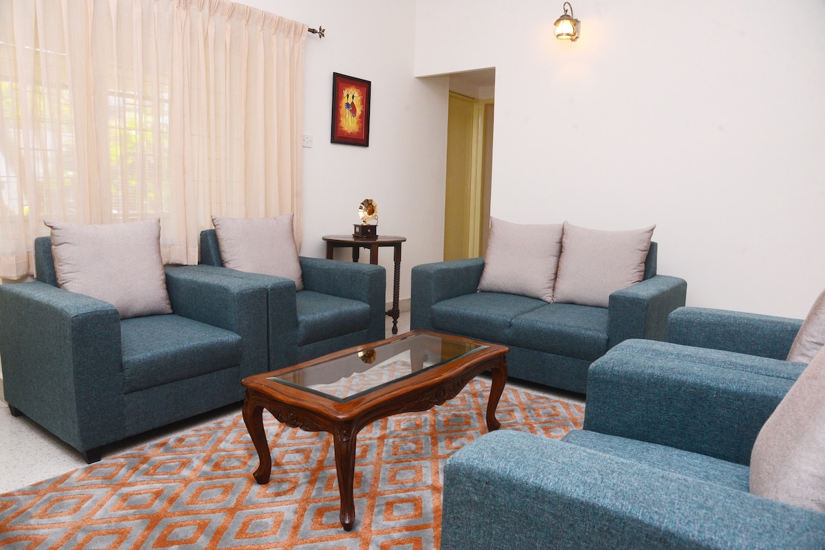 Nag - aalok ang 2 Bhk apartment na ito sa isang mapayapang cul - de - sac ng tahimik na kapaligiran sa pamumuhay habang nagbibigay pa rin ng madaling access sa makulay na lungsod ng Bengaluru. Ang apartment ay may lahat ng kaginhawaan para sa iyong pamumuhay, ginagawa itong isang perpektong pagpipilian para sa mga pamilya o propesyonal. Ang lokasyon ay mahusay na konektado, na may mga pangunahing shopping center at kapana - panabik na mga pagpipilian sa nightlife na madaling maabot at 40 min mula sa paliparan. Ang apartment na ito ay ang perpektong base para sa iyo.