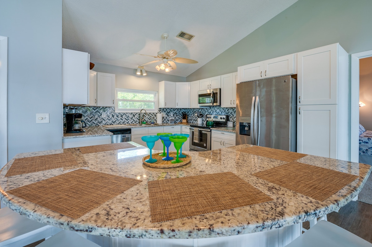 Panatilihin itong simple sa tahimik at sentral na lugar na ito. 1.4 milya lang ang layo mula sa beach at 1 bloke mula sa mga pub at restawran ng Ormond; puwede kang magbisikleta o maglakad papunta sa karamihan ng pinakamagagandang lugar! Idinisenyo para sa tunay na pagrerelaks at nilagyan ng lahat ng kakailanganin mo para masiyahan sa iyong komportableng tuluyan na malayo sa bahay. Mayroon kaming beach, mga restawran, at mga ilog sa malapit para sa kayaking o bangka! Pumunta sa isang paraan para sa mga beach at maaliwalas na pub crawl at ang isa pa para sa mga daanan sa paglalakad at tamad na ilog na lumulutang.