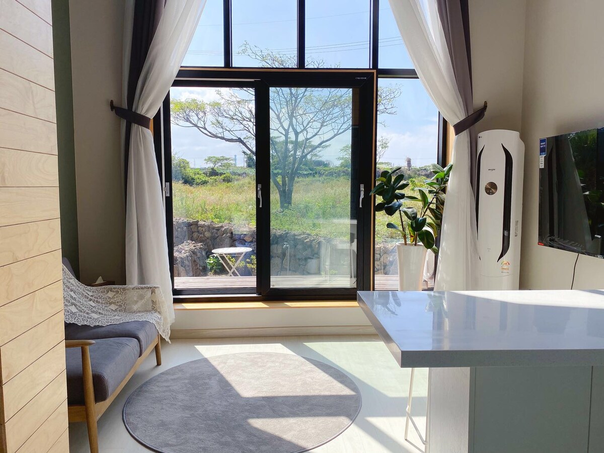 # Panpo Port # Hyeopjae Beach # Geumneung Beach # Jeju West Inaanyayahan ka naming pumunta sa isang tuluyan kung saan masisiyahan ka sa mga amenidad, lokasyon, at presyo. Sa paligid ng tuluyan, may 13 ruta at 14 -1 ruta sa Jeoji Oreum at Olle Trail, at mga atraksyong panturista tulad ng Garden of Thought, Castle of Glass, Osulloc at Mythological History Park. Malapit din ang Hallim Park, Hyeopjae, at Geumneung Beach, kaya madali mo itong magagamit. Bukod pa rito, nilagyan ang aming tuluyan ng iba 't ibang amenidad at malinis na kapaligiran, at naniniwala kaming sapat na ang sikat ng araw na papasok sa tuluyan para pasayahin ang iyong enerhiya. Matagal nang maaalala ang oras na ginugol sa pagtingin sa bintana habang kumakain. Magiging host kami na gumagawa ng aming makakaya para sa isang malusog na araw ng aming mga bisita. :)