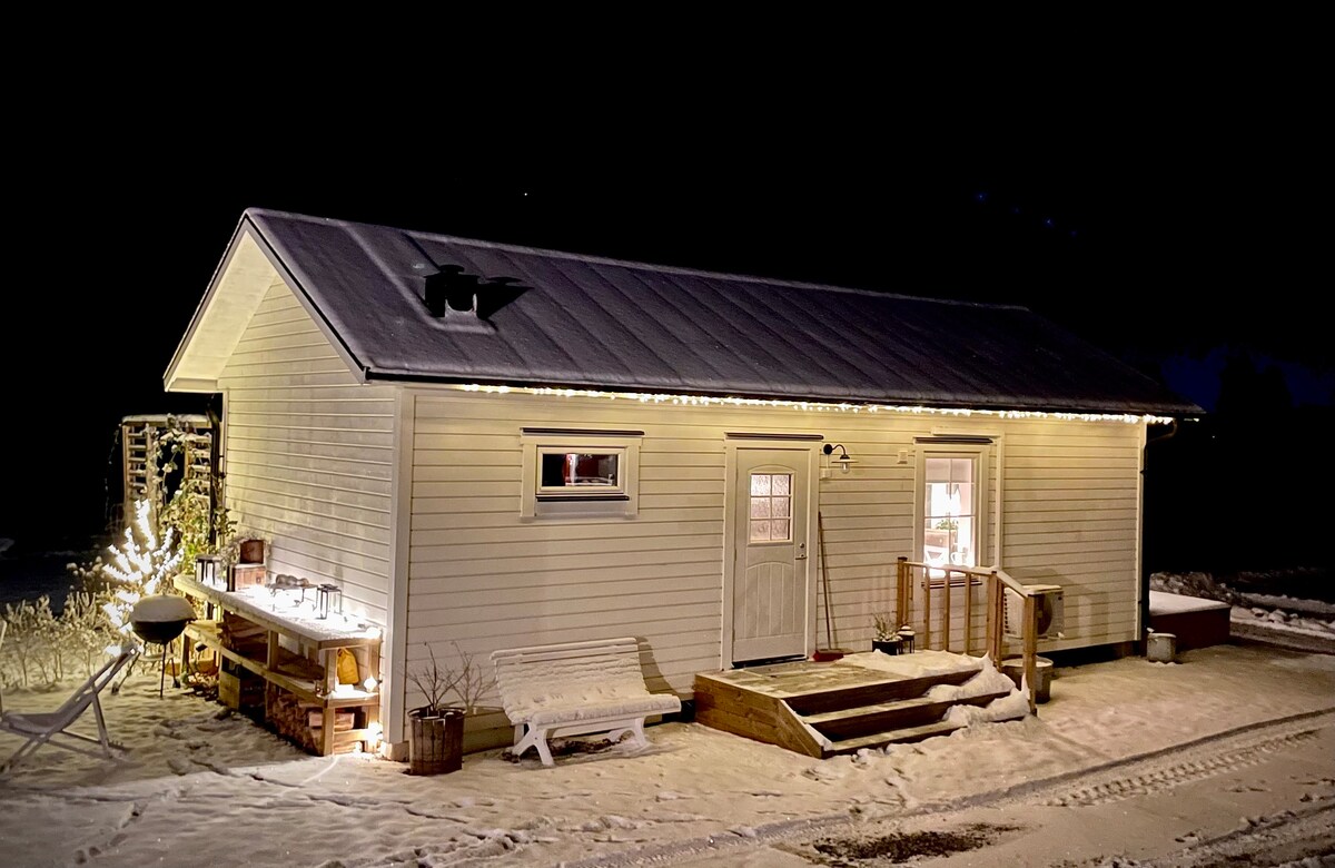 Välkomna till vårt gästhus Stugan ligger på vår gård med naturen runt knuten, mitt i en historisk miljö, åtta minuter med bil från centrum och med terrängspår för vandring, löpning eller MTB-cykel utanför dörren. På gården bor förutom vi, en hund och två katter. Sommartid finns en trampolin, sällskapsspel i trädgården samt en liten grill och uteplats i en pergola.