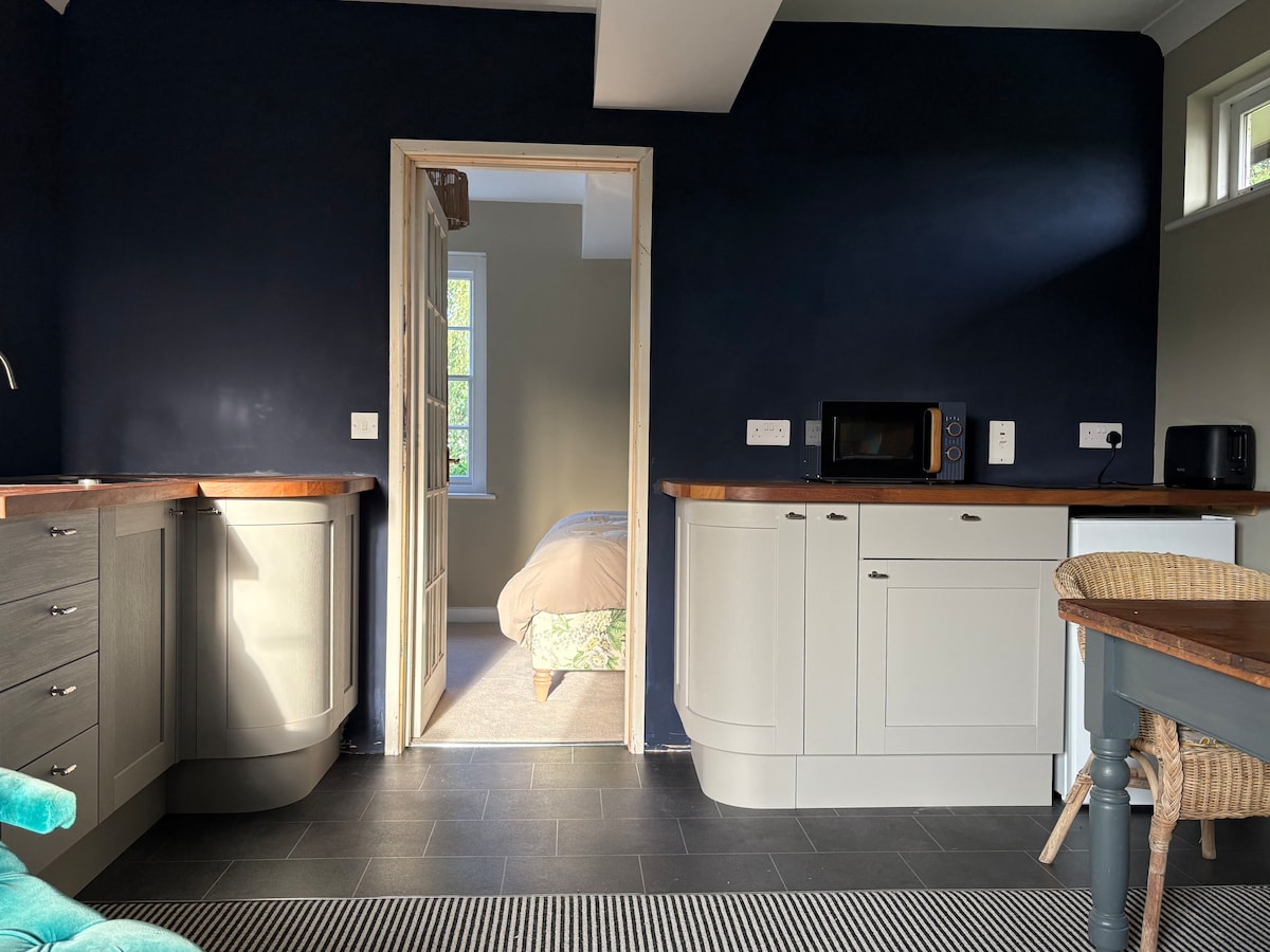 The Tack Room - stylish self contained annexe with open plan living and kitchen, shower room with separate bedroom and secure parking within a gated driveway. Located 6 miles east of Chichester and Goodwood - easy access to both; close to Arundel, the South Downs National Park and perfectly situated to explore the beautiful countryside and beaches of the south coast. Fontwell racecourse is within easy walking distance.