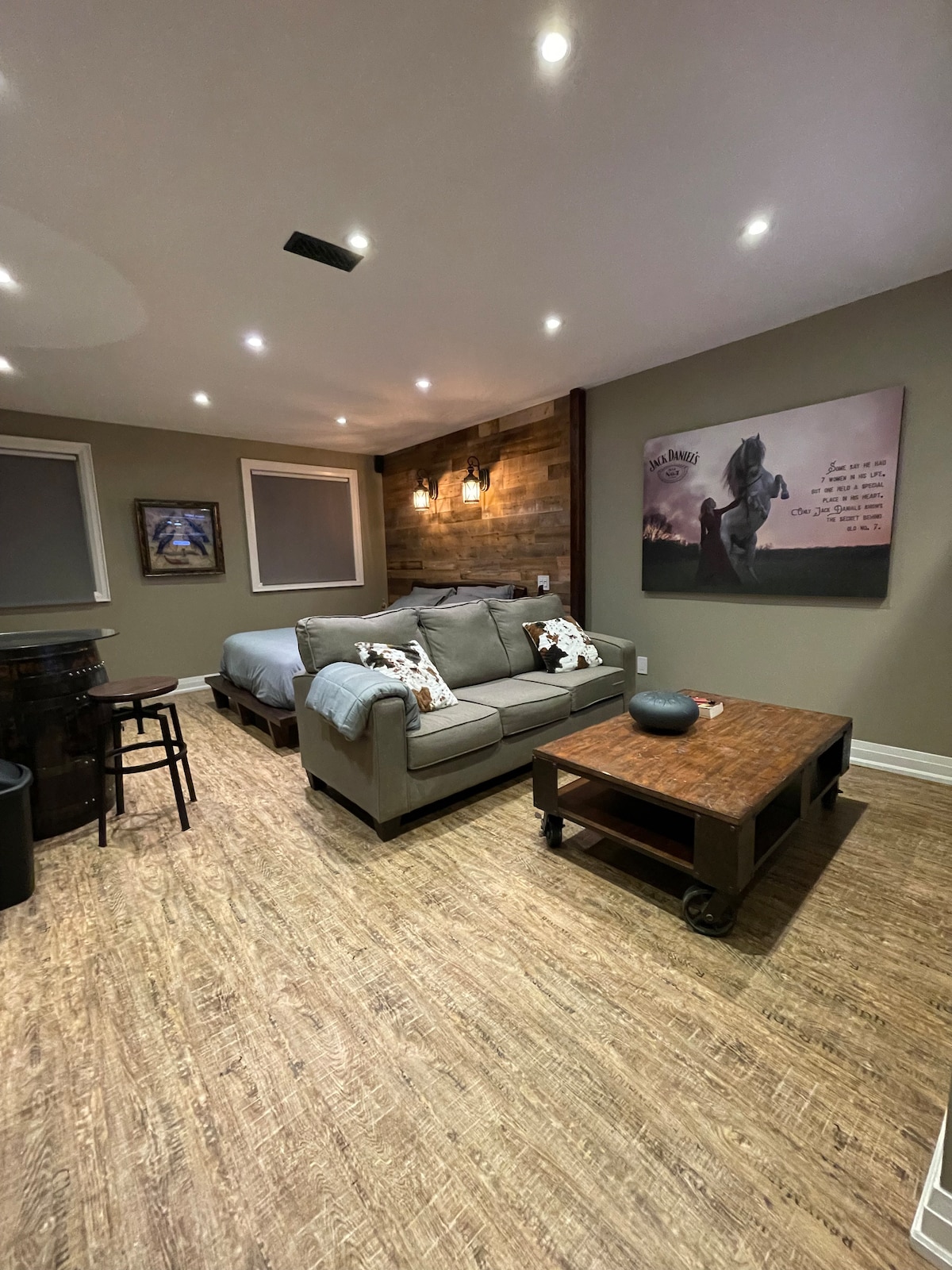 Bagong na - renovate, 1 - silid - tulugan na walkout na apartment sa basement! ✅ 750 sq. ft. ng bukas na espasyo na may malalaking bintana, na ginagawang maliwanag at maaliwalas Komportableng sala na may: ✅ Sofa ✅ Day bed na umaabot sa king bed ✅ Fireplace ✅ Smart TV Modernong kusina na may: ✅ Dishwasher ✅ Microwave ✅ Washer at dryer ✅ Coffee machine ✅ Oven, toaster, atbp. ✅ Panlabas na lugar na may patyo at BBQ ✅ 2 Paradahan sa driveway Perpekto para sa mga bakasyon ng pamilya o business trip! 😊