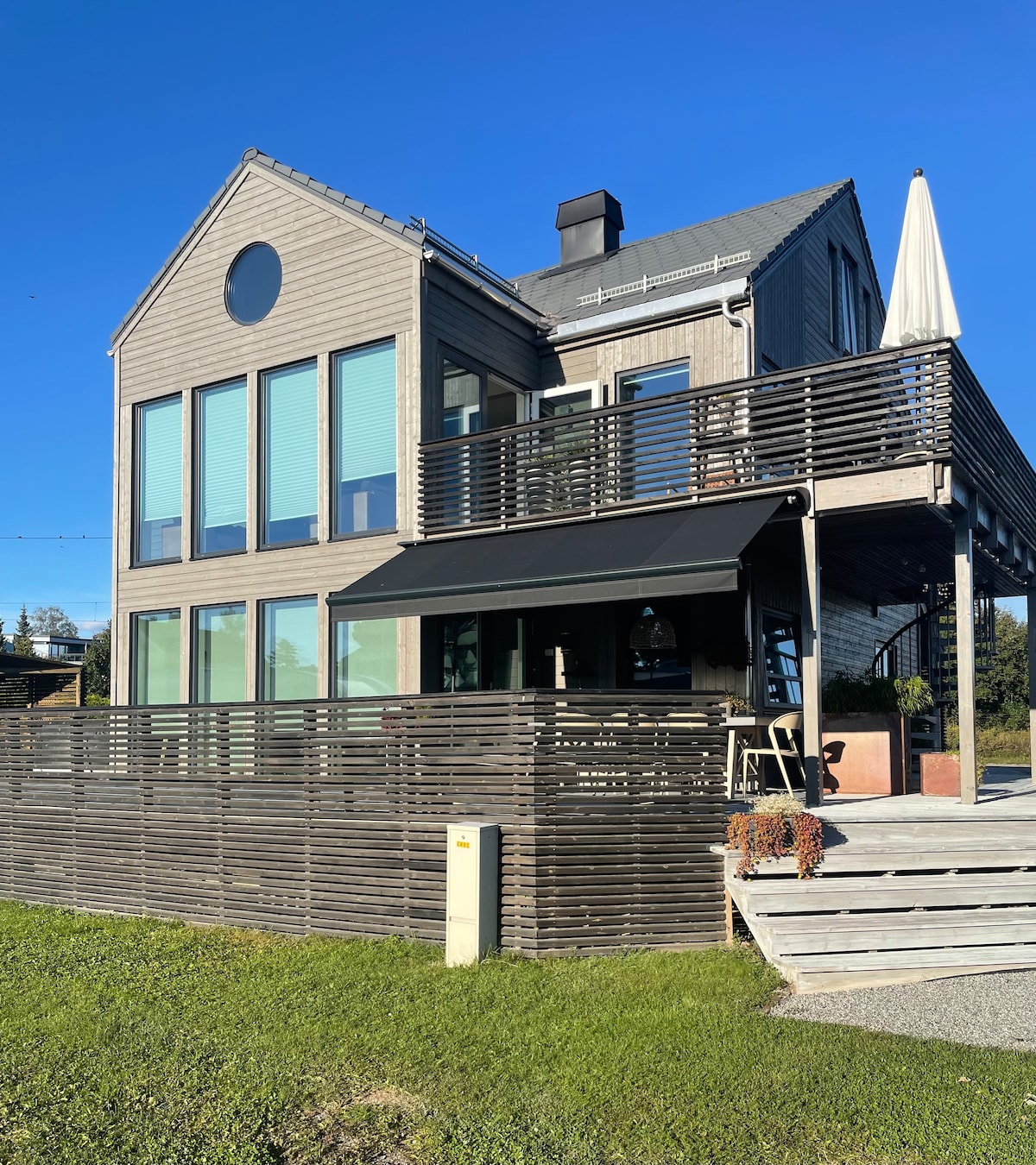 Nytt hus fra 2019 leies ut i Fjordveien 45C. Huset er familievennlig og ligger i et rolig boligområde. Det ligger 50 m unna Mjøsa, med et tilbaketrukket strandområde med bademuligheter. Huset har en 80m2 stor takterrasse med grill, spisebord, solsenger og egen sofagruppe. Her kan du nyte sol hele dagen, og få med deg nydelige solnedganger. Huset ligger 1 km unna Atlungstad golf og -brenneri. Det er 3,5 km inn til Hamar. Huset har to soverom med to dobbeltsenger, samt to separate bad.