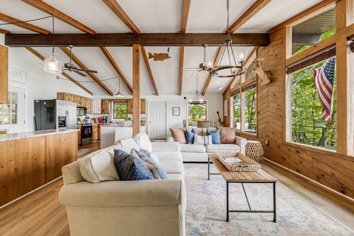 I - off ang mundo dahil tinatanggap ka ng modernong lakeside cottage na ito. May higit sa 1/2 acre ng lupa, nag - aalok ang 964 sqft space na ito ng kusinang kumpleto sa hinirang at malaking sala na may komportableng sectional na makikita sa mga tanawin ng lawa. Pinapayagan ng King size bed ang mga alalahanin na maanod. May kalakip na malaking walk - in shower at banyo. USB charging sa buong lugar kasama ang WIFI. Ang lawa ay iginuhit pababa, kalagitnaan ng Setyembre - Abril, na nangangahulugang ang antas ng tubig sa panahong ito ay maaaring wala. Paglulunsad ng bangka sa dulo ng kalsada.
