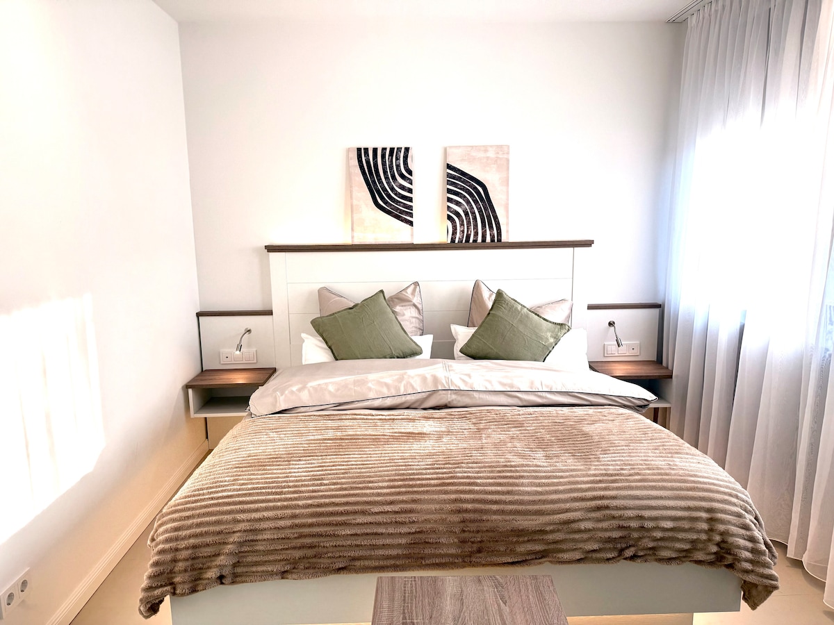 Ang hiwalay na guest house ay tahimik sa isang cul - de - sac na lokasyon – perpekto para sa mga mag - asawang may (mga) alagang hayop o mas maliit na pamilya na may (mga) bata at (mga) aso. May modernong kusina, maluwang na sala, balkonahe at paradahan sa labas mismo ng pinto sa harap, ito ang perpektong bakasyunan. Sa itaas, may silid - tulugan na may dalawang bagong yari na higaan sa iisang kuwarto – kaya hindi idinisenyo ang property para sa mga grupo o apat na may sapat na gulang. Puwedeng magbigay ng pangatlong higaan kung kinakailangan.