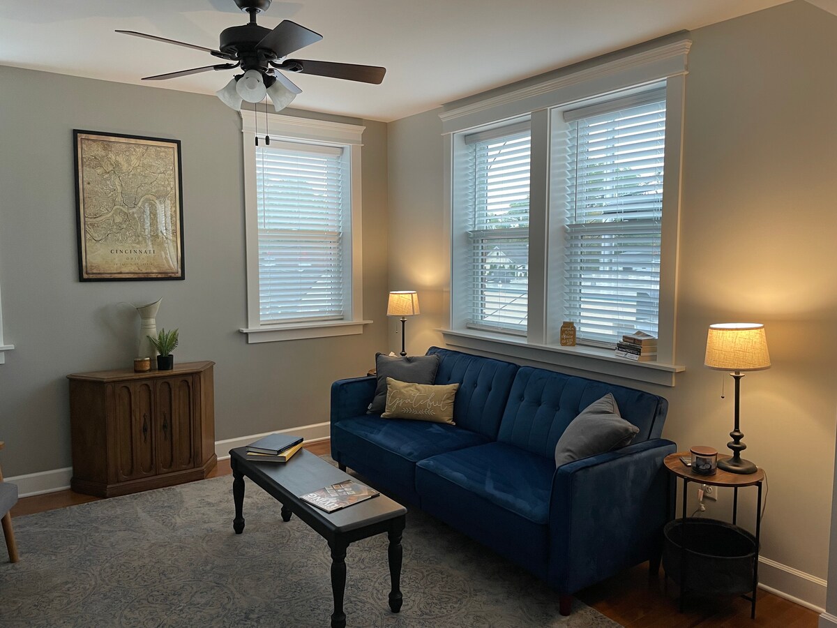 Maligayang pagdating sa Ludlow Lofts - isang hindi kapani - paniwalang chic & stylish loft sa Clifton Gaslight District. 1 milya sa University of Cincinnati at 10 minuto lamang sa DT & ang Bengals/FC/Reds stadiums. Sa 1000sf, masisiyahan ka sa mga luho ng isang full - size na tuluyan nang hindi isinasakripisyo ang kaginhawaan! Mainam na matutuluyan din para sa mas matatagal na pamamalagi. Mga kaaya - ayang restawran, grocery, sinehan, ice cream at marami pang iba sa labas ng pinto. 3 bloke lang ang layo mula sa Cincy Zoo. BTW, mas mabilis ang aming internet kaysa sa mga Cheetah sa Zoo!