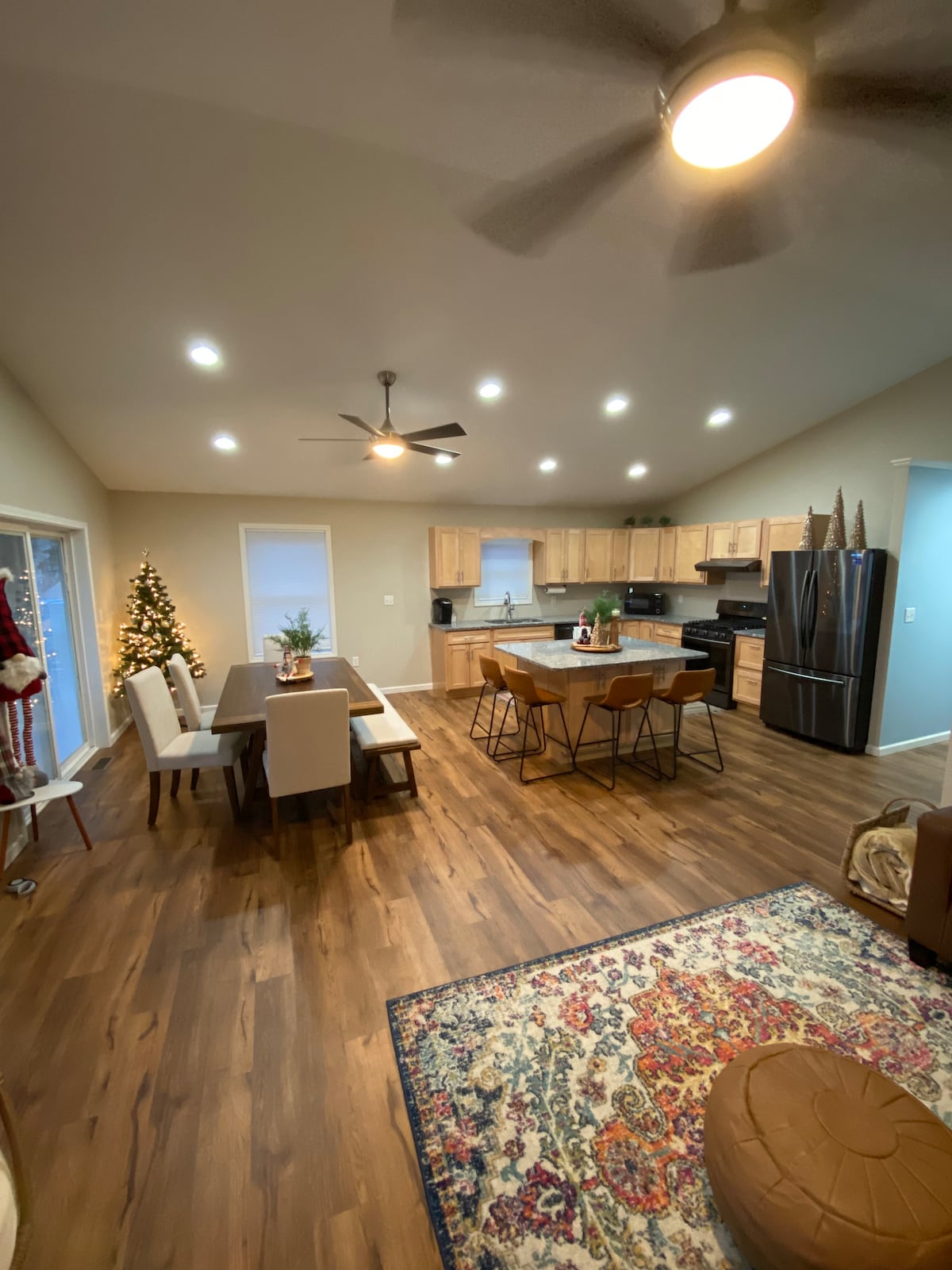 Hindi mo kailangang ipanganak sa isang kamalig para magbakasyon sa isa. Mag - trade sa lungsod para sa milyun - milyong bituin sa kalangitan sa gabi! Sa pagpasok mo sa mga pinto ng France, sasalubungin ka ng isang bukas na konseptong kuwartong pinalamutian ng kamalig/pang - industriyang motif. Knotty pine car - siding at galvanized steel, kahoy na sahig kasama ang isang reclining leather couch at love seat punan ang kuwarto Isang buong kusina na may granite counter tops naghihintay sa iyo. Maraming natural na ilaw para sa mga gabi.
