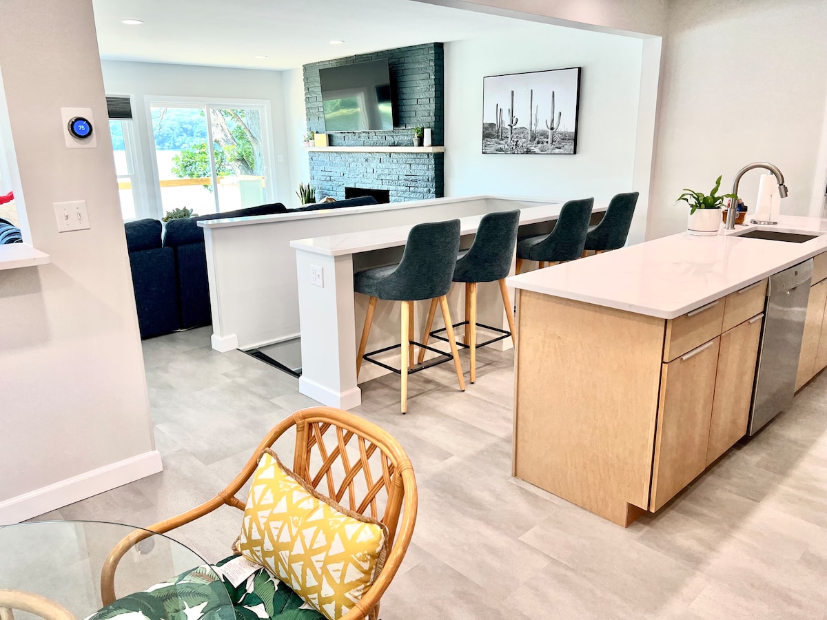 Isang pagkilala sa aming paboritong world traveler - siya ang unang mamamalagi sa aming mga property at bigyan kami ng mabuti, masama at pangit para maayos namin ang tunay na karanasan para sa IYO. May 4 na tulugan, hot tub na magagamit sa buong taon, game room na may ping pong table at malaking screen TV, malalaking lugar para sa pagtitipon sa loob at labas, bagong kusina, at sarili mong mga kayak para makapaglibot sa lugar ang bagong ayos na tuluyan sa lawa na ito. Mag‑enjoy sa mga tanawin ng paglubog ng araw at lawa mula sa hot tub sa malawak na deck o habang nag‑iihaw sa Weber gas ihawan.