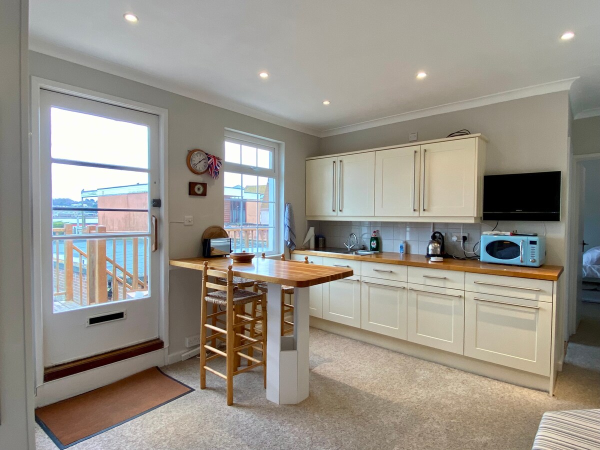 Natutulog 4, sa isang push, sa tatlong kuwarto kabilang ang lounge. Cot kung kinakailangan. Toilet at shower room. Palamigan, microwave, toaster, kettle, lababo, ngunit walang oven o hob. TV at Wifi. May mga pasilidad sa paglalaba Isang minutong lakad mula sa Red Jet. Sa labas, nakaupo sa balkonahe na may tanawin ng daungan. Ligtas na paradahan sa labas ng kalsada. Perpektong base para sa mag - asawang may maliliit na bata o mandaragat sa isang regatta. Paumanhin, walang alagang hayop.