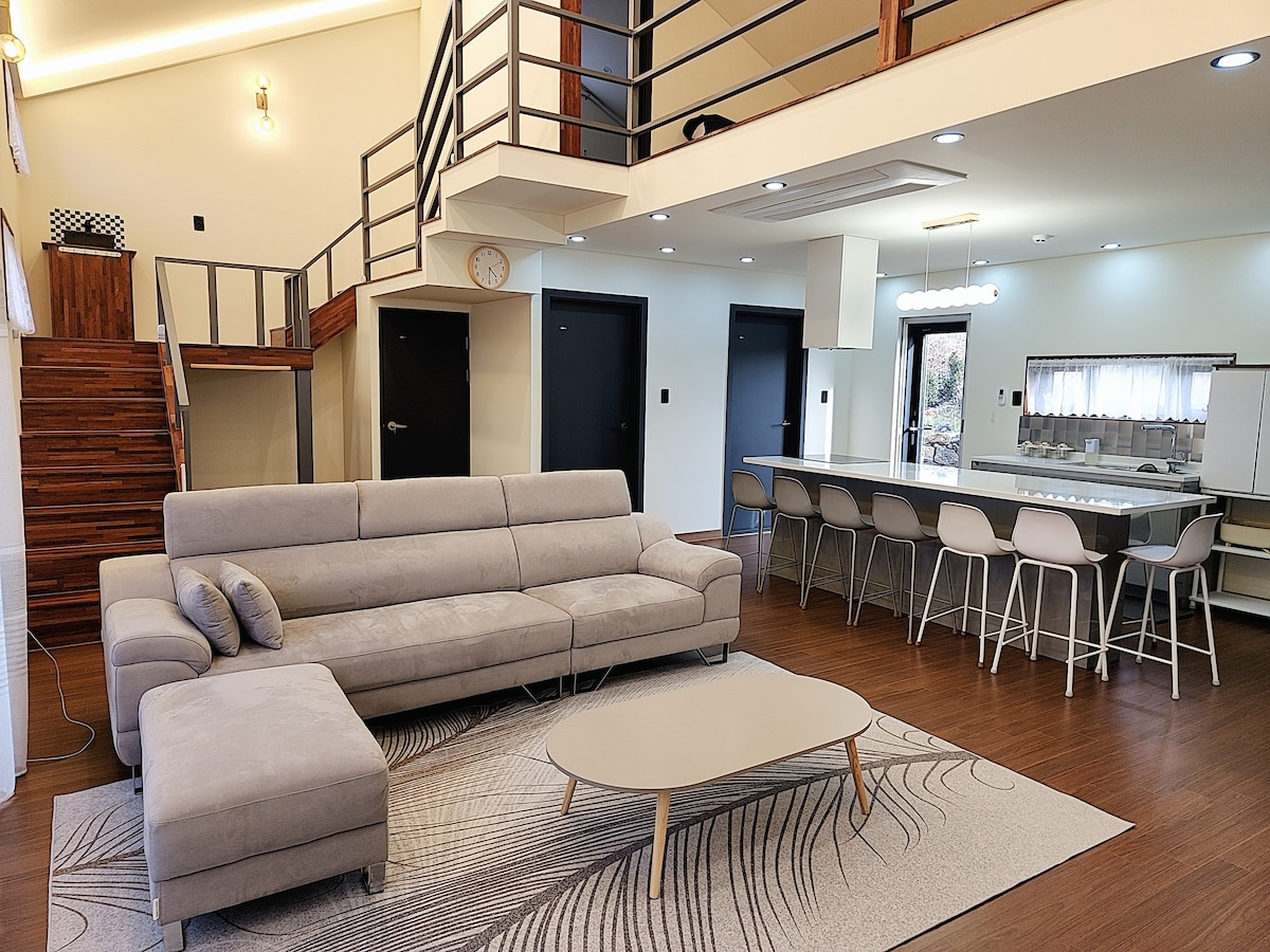 * * Nagsasagawa kami ng libreng serbisyo sa photography para sa mga bisita. Kapaki - pakinabang ang oras ng photoshoot sa loob ng humigit - kumulang 30 minuto at magiging available ito sa loob ng 12 litrato pagkatapos ng retouching. Sabihin sa amin kung kukuha ka ng mga litrato kapag nag - book ka. [Sea; Sun] - Ang "Friends" ay isang marangyang villa - type na dog rental house para sa isang team lang. Matatagpuan ito sa kanlurang Jeju, mga 1 km ito mula sa Hyeopjae Beach, na pinakamaganda sa Korea. Sa hardin ng damuhan na 400 pyeong, ang mga bulaklak at puno tulad ng mga puno ng palmera at hydrangeas ay kumukuha ng kagandahan sa ibang paraan mula sa panahon hanggang sa panahon. May pribadong jacuzzi sa labas na may apat na panahon ng mainit na tubig na libre mula sa labas. (Libre para sa mainit na tubig) Ang malinis na modernong interior na may estilo ng bahay ay nakapagpapaalaala sa isang gallery na may mataas na kisame at mga frame at prop na inilagay sa iba 't ibang panig ng mundo. Inihanda namin ang lahat ng uri ng mga kagamitan para sa aso para walang kakulangan ng oras sa iyong aso. Gagawin namin ang lahat ng aming makakaya para maibigay ang pinakamagagandang alaala ng iyong biyahe sa iyong minamahal na aso.