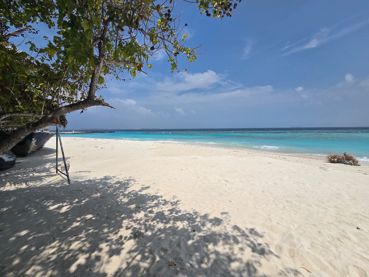 ✨ Maligayang pagdating sa aming komportableng guesthouse na may 3 kuwarto sa Maalhos, Baa Atoll, isang perpektong bakasyunan sa isla para sa mga pamilya at grupo ng hanggang 8 bisita. Ilang hakbang 🌴 lang mula sa beach, pinagsasama ng aming guesthouse ang kaginhawaan, privacy, at mainit na hospitalidad sa Maldivian. Maluwag, naka - air condition, at idinisenyo ang bawat kuwarto para makapagpahinga. Nagtatampok din ang bahay ng kusinang kumpleto ang kagamitan at silid - kainan, Mag-aalok kami ng mga pagkain na may bayad, mga guided tour, at magiliw na serbisyo para maging parang tahanan ang iyong pamamalagi. 💙