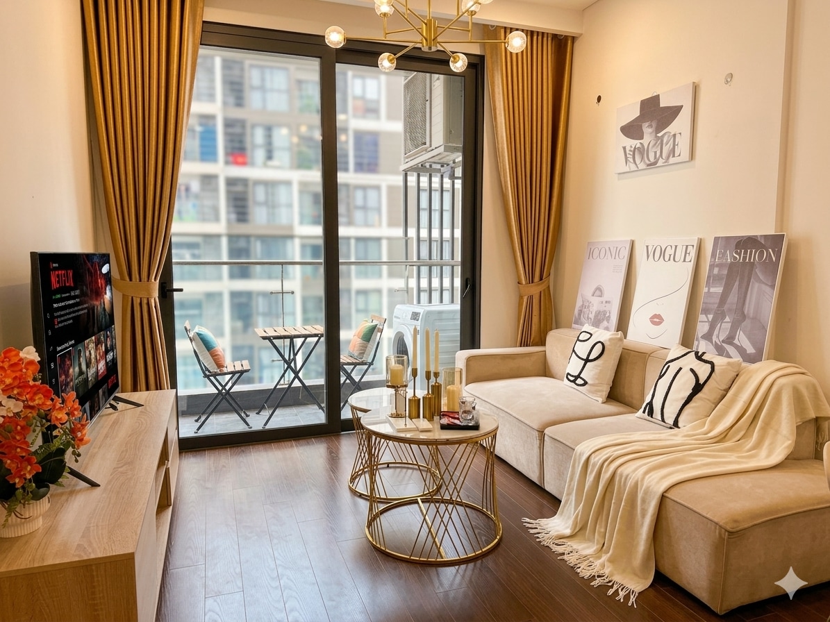Isang mamahaling apartment na may estilong Hapon na may 1 kuwarto, 1 banyo, hiwalay na shower, at mga smart Toto na kagamitan, na matatagpuan sa Landmark 2 – Swanlake Onsen, isang mainam na sentrong lugar ng Ecopark. Sa apartment, may mga panoramic na tanawin ng Swan Lake Park, mga villa sa isla, at nakamamanghang tanawin sa gabi, at madaling mapupuntahan mula rito ang Japanese Onsen hot spring, golf course, EPGA Academy, food street, supermarket, mga restawran, mga café, gym, spa, four‑season na outdoor pool, mga landscaped na hardin, at Japanese Koi pond.