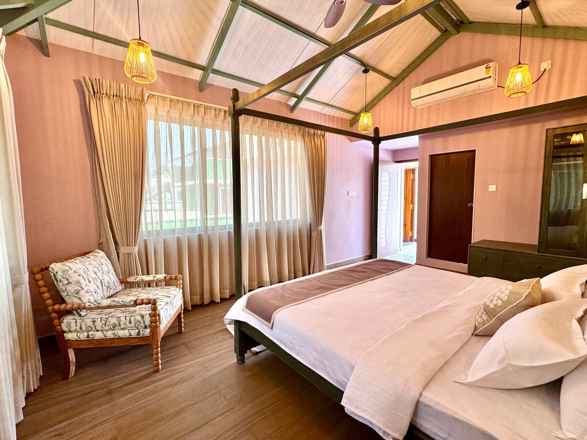 Maingat na idinisenyo ang villa na may 3 kuwarto at kusina para makahinga ng malalim sa simoy ng hangin mula sa karagatan. Nagâaalok ito ng magagandang tanawin ng malawak na Arabian Sea na magandang paggising. May banyo at patyo ang tatlong kuwarto at kumpleto ang gamit sa kusina. Magâyoga sa umaga o kumain ng masarap na almusal sa malawak at komportableng courtyard. Ginawa ang tuluyan na ito at nilagyan ito ng maximum na 5 indibidwal at ligtas at may gate.