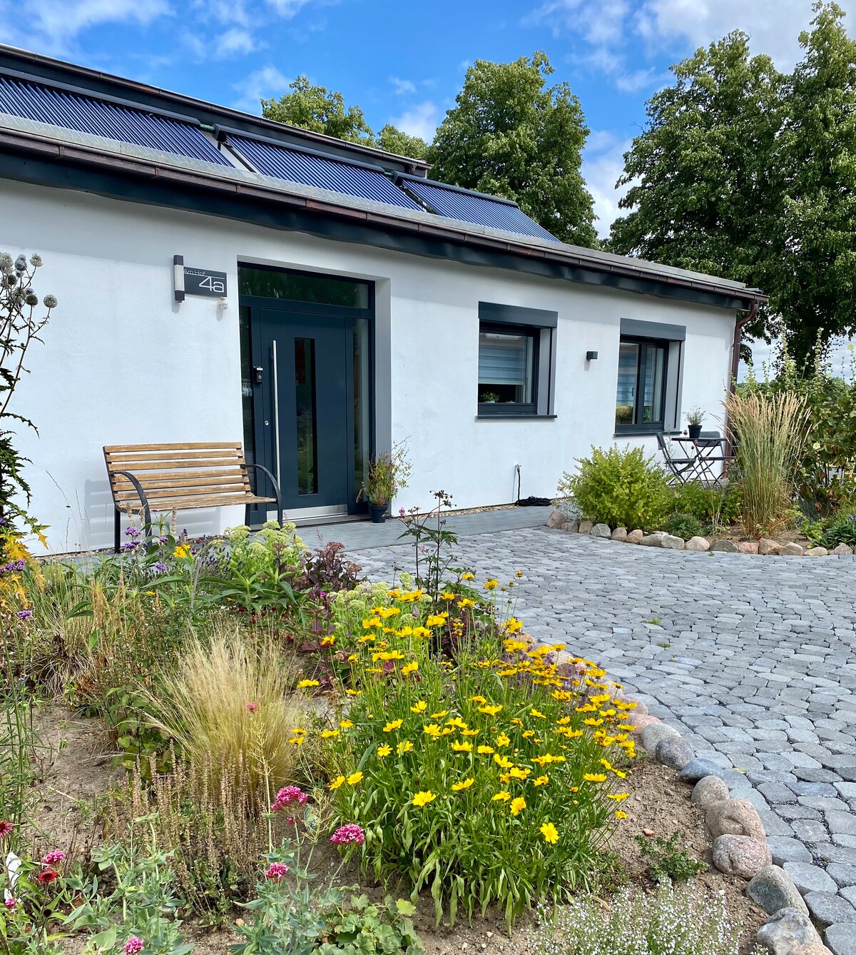 Maligayang Pagdating sa Baltic Sea! Ang apartment na ito ay nasa paligid ng buong mas mababang palapag ng isang bahay ng pamilya. Dito mahahanap mo ang lahat ng ito para sa isang magandang bakasyon. Ang hardin na may terrace, halaman, lawa at carport ay nasa iyong nag - iisang pagtatapon. Hindi ito palaging kailangang maging beach, ngunit 500 metro lamang ang layo nito. Nasa maigsing distansya ang lahat ng shopping at restaurant. Puwede mo ring dalhin ang iyong aso, nababakuran ang property.