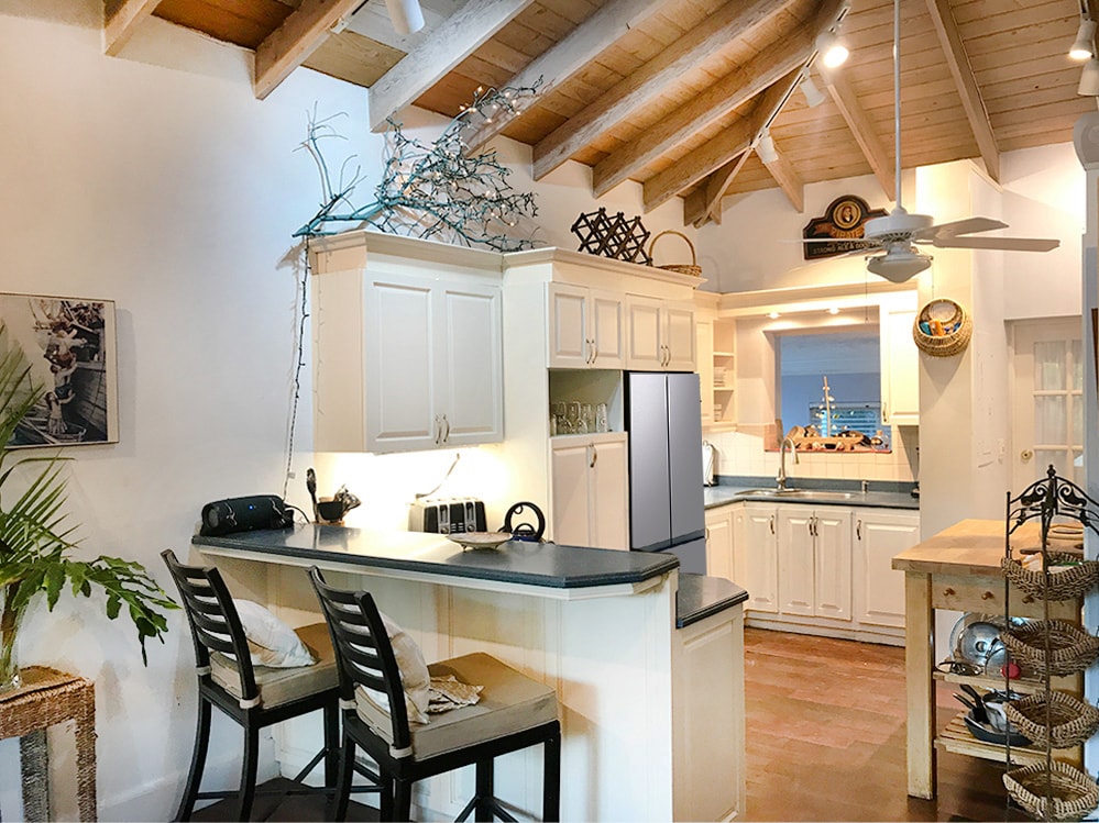 Ang Pirates Den ang pangunahing bahay sa Three Little Birds. Ito ay isang maluwang na layout na may kumpletong kusina at isang panlabas na kusina, vaulted na sala, opisina, king bedroom at opisina kasama ang isang labahan. Maikling lakad ito papunta sa beach at sa tabi ng Romora Bay Club & Marina na nag - aalok ng live na musika, bar at restawran at magagandang paglubog ng araw. Mayroong dalawang karagdagang semi - detached rear studio suite na may sariling mga pasukan na maaaring paupahan sa bahay o nang nakapag - iisa. Pansamantalang hindi available ang pugad ng uwak.