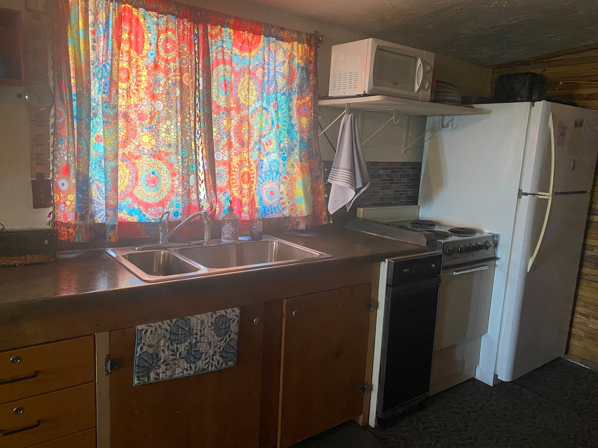 Matatagpuan ang Sage Cottage sa magandang Pottawatomie County sa aming sariling Oaklore Forest. Dalawa ang tulugan ng cottage sa aming queen size bed, may mini - kitchen at 3 - piece na banyo na may stand - up shower. Nilagyan ang kusina ng maliit na bar sink, double hot plate, toaster, microwave, coffee pot, kuerig, oven ng toaster, maliit na refrigerator at mga pangunahing kailangan sa pagluluto. May bistro table, picnic table, grill at breakfast table sa loob! Libreng Wi - Fi, Hot tub na bukas sa buong taon, mga robe, tingnan ang "iba pang bagay na dapat tandaan"