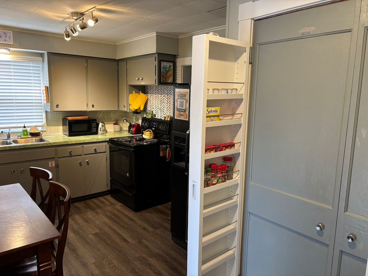 Malapit ang kakaibang maliit na bahay na ito sa Sand Creek Trail at maikling lakad papunta sa mga amenidad sa downtown ng Newton. Masiyahan sa isang gabi sa paligid ng fire pit sa likod - bahay na nakabakod sa privacy. Ang "hipster" na bahay na ito ay puno ng mga retro at reimagined na muwebles. Babala: Maaari kang makaranas ng nostalgia! May mga hagdan sa pasukan sa parehong pinto, na maaaring limitahan ang kadalian ng accessibility para sa ilang bisita. Dahil sa edad ng bahay at mga amenidad na inaalok, hindi angkop ang listing na ito para sa mga batang wala pang 10 taong gulang.