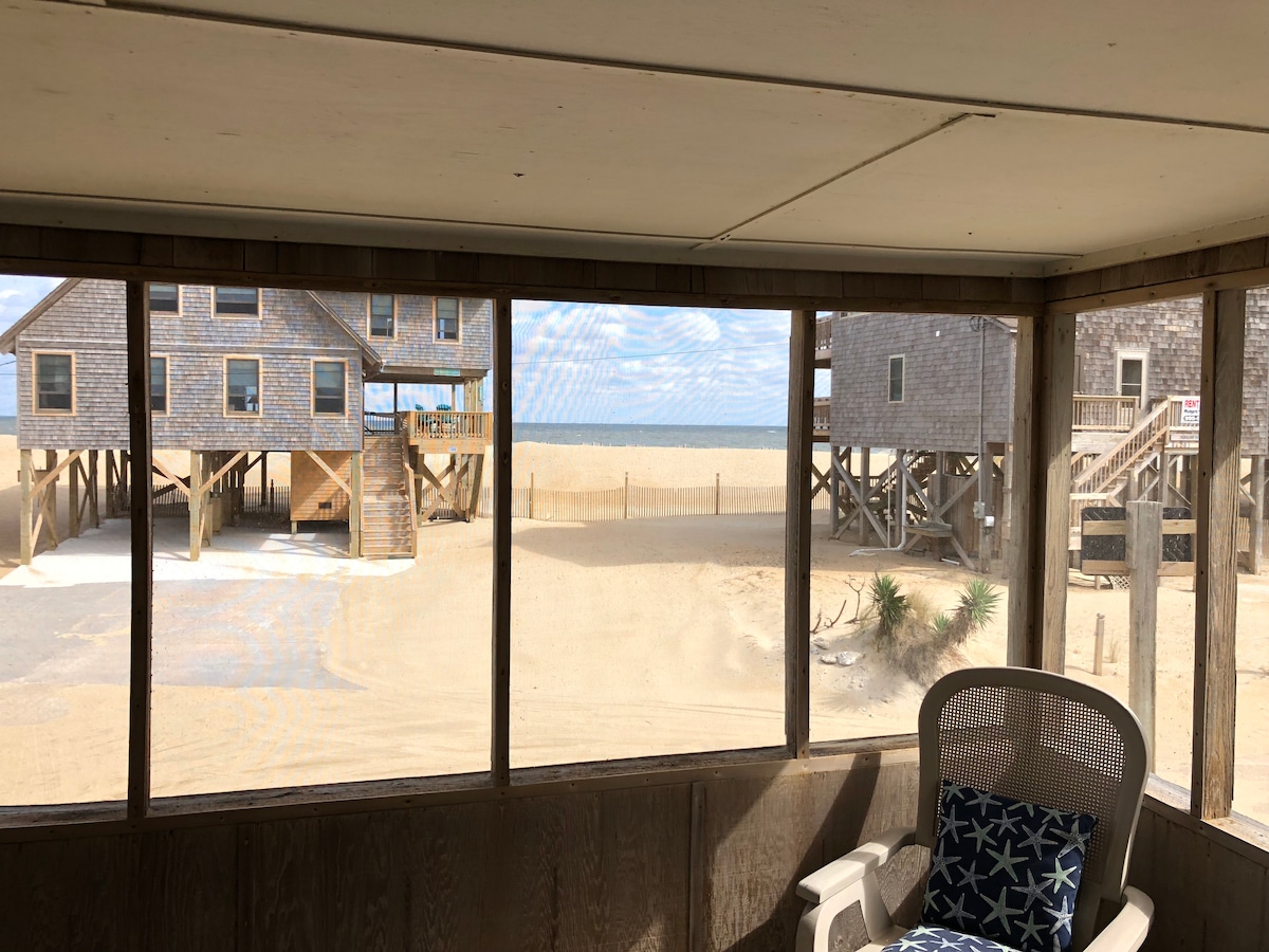 Ang semi - ocean front/halos walang harang na tanawin ng karagatan, na nakatago sa dulo ng isang tahimik na cul - de - sac, ang PTL ay nag - aalok ng sarili nitong brand ng privacy na may "over the dune" access sa karagatan. Pinalamutian ng mga modernong amenidad ang aming maliit na cottage (HVAC, roku tv, internet) habang nag - aalok ang malawak na screen sa beranda ng mga tanawin ng karagatan, na nagbibigay - daan sa iyong ma - enjoy ang mga tanawin, tunog at amoy ng pamumuhay sa dalampasigan.