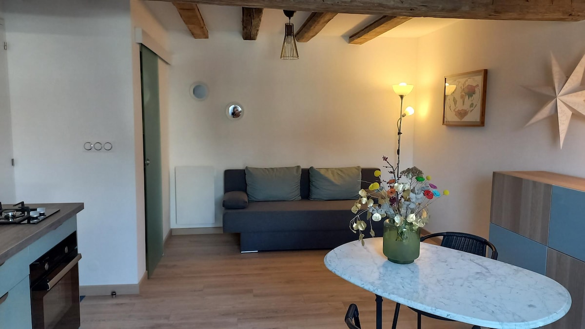 Le studio plain-pied au calme de 22 m² avec vue sur cour intérieure d'une ancienne maison du 18è siècle est situé dans le centre historique du village. L'entrée indépendante se fera par une cour après avoir franchi le grand portail à coté de la maison. Possibilité de stationner à coté de la maison. Idéalement situé pour vos excursions , vos randonnées pédestres et cyclistes dans un environnement d' une extraordinaire richesse historique, architecturale, gastronomique et naturelle..