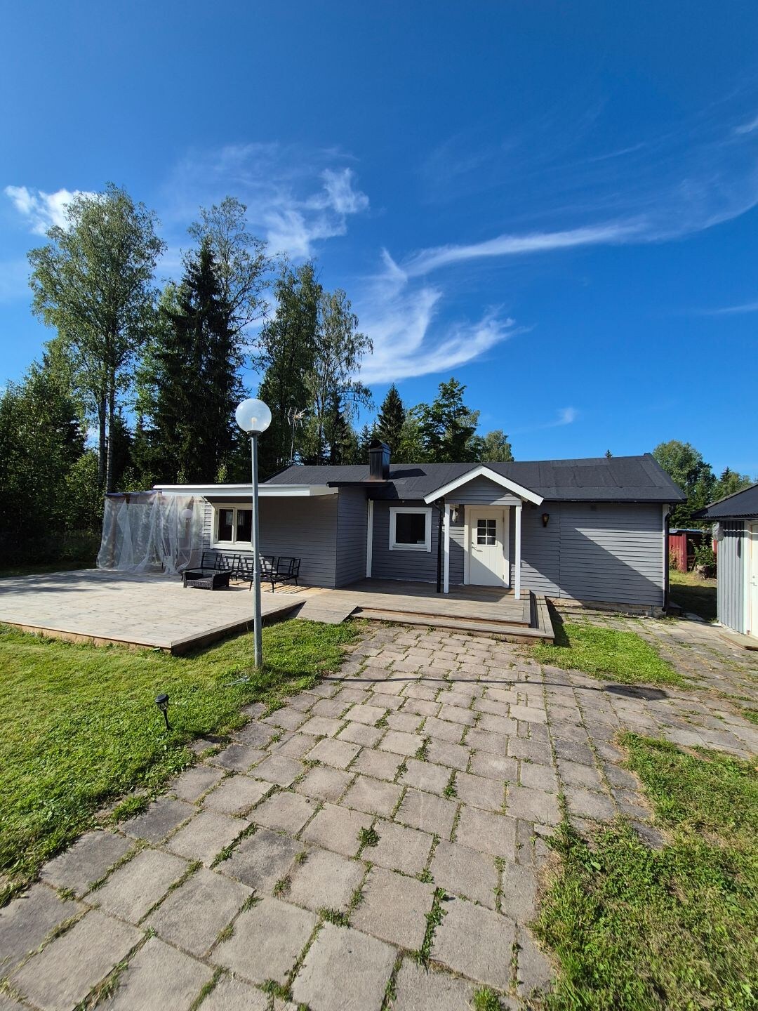 Maaliwalas na cottage na may sariwang dekorasyon. Banyo na may shower, kusina, sala at silid - tulugan. May sauna at hot tub ayon sa pagkakaayos. Available para sa pag - upa ang mga tuwalya at sapin. Sa malapit ay may napakagandang mga pagkakataon sa pangingisda at magandang kalikasan na may mga hiking trail sa Farbofjärden national park.