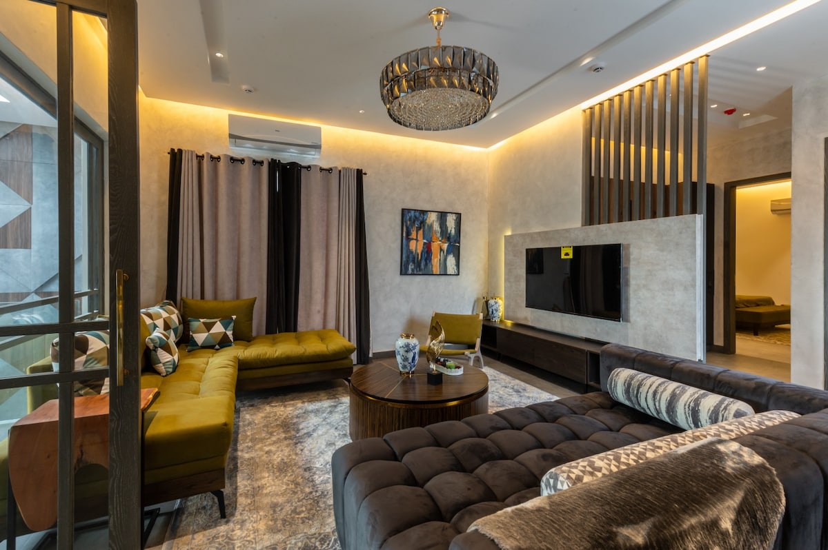 • Bagong itinayo at ganap na pribadong apartment sa unang palapag • 3 king-size na kuwarto, 2 banyo, malaking sala at balkonahe na may tanawin ng halaman • Modular na kusina, induction plate, RO water, at mga pangunahing gamit sa kusina. Available ang Swiggy/Zomato/Instamart/Blinkit • Split AC, opsyonal na heating, LED wall panel, at opsyonal na karaoke nights • Pangunahing lokasyon sa sentro ng lungsod: Malapit sa Golden Temple, mga lokal na tindahan at kainan • Pampamilya at pampangkat, tahimik at kalmadong residensyal na vibe • Personalisadong lokal na patnubay mula sa host at premium na kaginhawaan