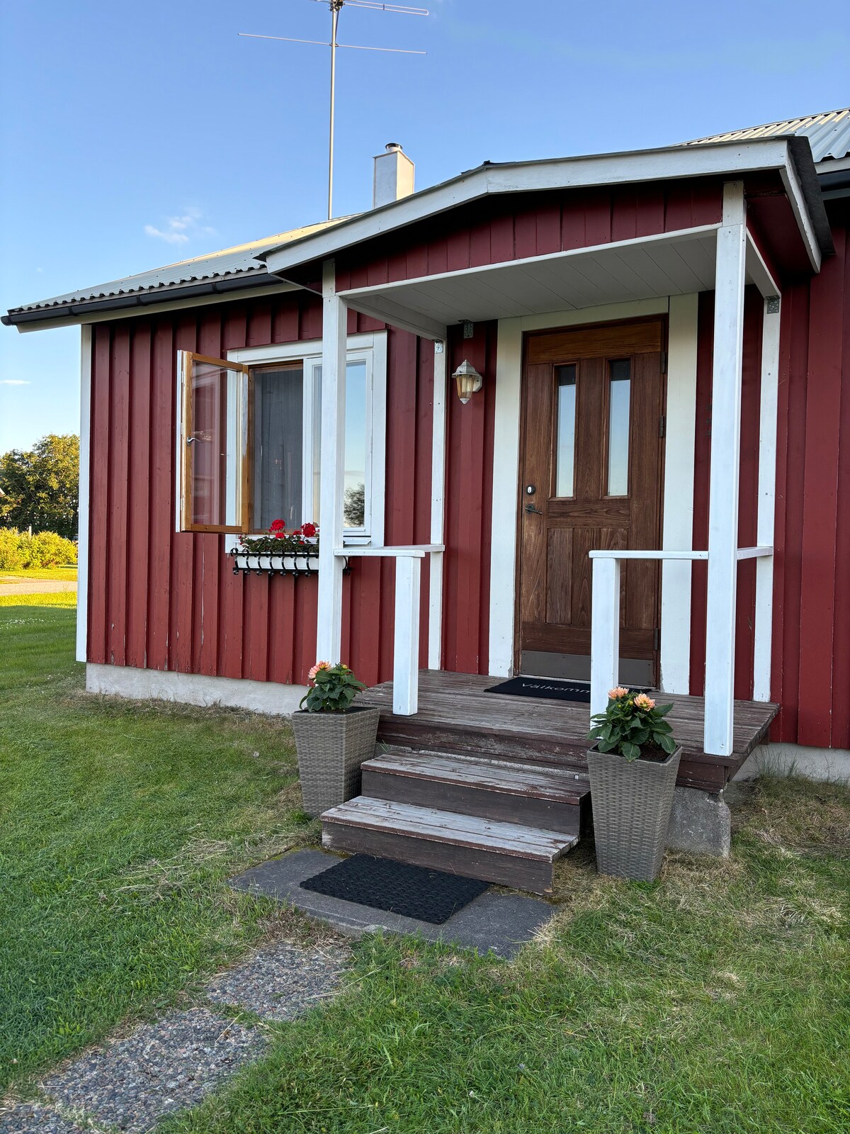 Ang rustic "Härbret" na may sleeping loft ay nag-aalok ng isang maginhawang pananatili na may pakiramdam ng pagiging malapit sa kalikasan. Ang kusina ay may refrigerator, coffee maker at mga cooking plate. Ang "Kaminrummet" na may maraming bintana ay may sariling kalan na pinapagana ng kahoy na nagpapainit at lumilikha ng sariling kapaligiran. Ang toilet (walang tubig. Separett) ay malapit sa silid ng kalan. Ang pinto mula sa silid ng kalan ay humahantong sa sariling patio. Ang shower ay nasa labas sa wood-fired sauna trailer. 520 kr / gabi / 1 tao, pagkatapos 190 kr / gabi para sa bawat dagdag na bisita