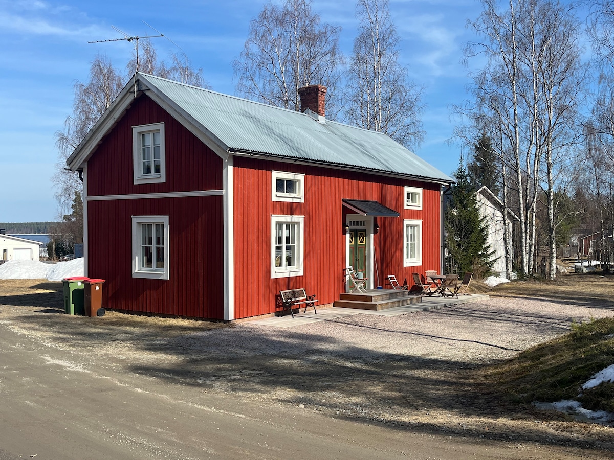Maaliwalas na tirahan na may tanawin ng lawa sa isang lugar na may magandang tanawin. Bahagyang na-renovate ang bahay noong 2020. Sa ibabang palapag ay may malaking sala, kusina, malaking banyo at maliit na banyo. Sa itaas na palapag ay may dalawang silid-tulugan na may 6 na higaan. - May access sa sauna sa katabing bahay, kasama ang shower at toilet. Mayroon ding sofa bed sa bahay na kayang magpatulog ng dalawang bisita. - May beach sa malapit. - Ang pinakamalapit na tindahan ng groseri ay nasa Bygdsiljum, 8 km ang layo - Malapit sa slalombacke, 8 km.