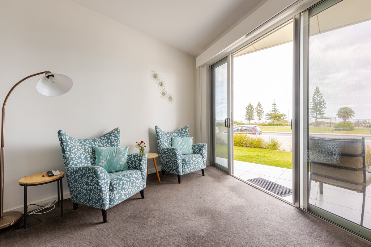 Lumabas lang sa iyong pinto sa harap, sa kabila ng mga damuhan at sa magagandang buhangin ng West Beach. Perpekto sa buong taon para masiyahan sa isang baso ng alak habang pinapanood mo ang paglubog ng araw. Mainam para sa isang romantikong bakasyunan kabilang ang mga paglalakad sa kahabaan ng beach. Pahalagahan ang ginhawa ng iyong komportableng king - sized na kama, magbabad sa spa bath o tangkilikin ang mga cafe at boutique na maigsing lakad lang mula sa iyong front door. Maginhawang matatagpuan na may direktang bus access sa Adelaide City, Glenelg, West Lakes at ang Domestic/International Airport.