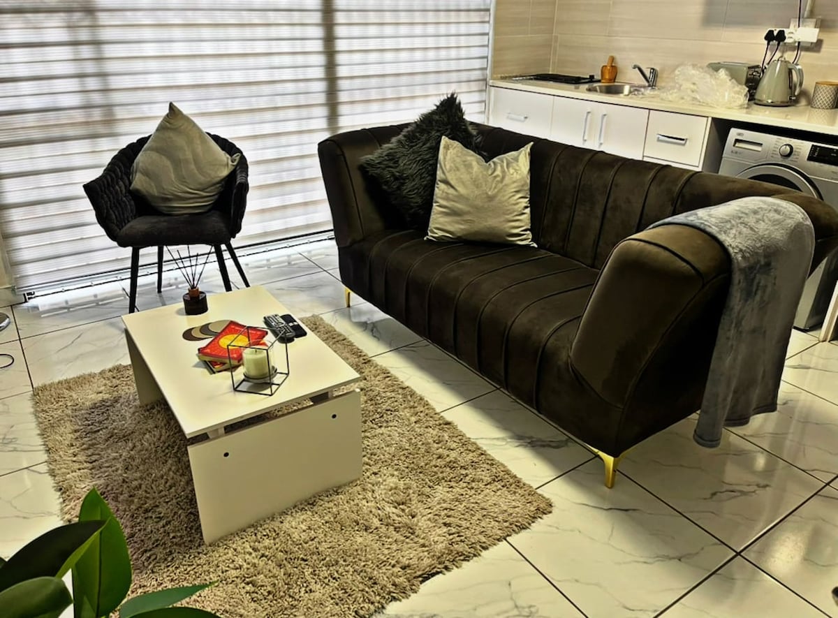 Welcome sa natatangi, moderno, at maestilong apartment sa Welkom na ginawa mula sa isang garahe at nag‑aalok ng pribado at komportableng pamamalagi. Perpekto ang open-plan na studio na ito na pinag-isipang mabuti ang disenyo para magrelaks, magtrabaho, o maging home base. May double bed, kusinang kumpleto sa kagamitan na may kalan at air fryer, living area na may TV at Open View, workspace, at Wi‑Fi. Mag‑check in nang mag‑isa gamit ang lockbox at gumamit ng nakatalagang carport.