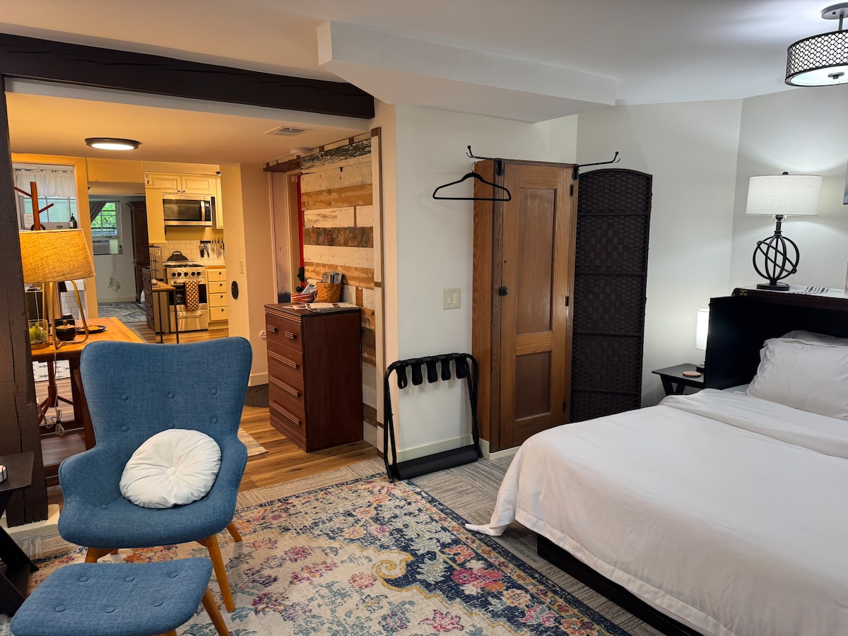 Ang studio na idinisenyo ng arkitekto na ito ay naliligo sa natural na liwanag, na may mga skylight at breakfast nook na may pambalot na bintana. Nagtatampok ng upscale na banyo na may walk - in shower, ang komportableng tuluyan na ito ay may lahat ng amenidad na perpekto para sa isang mabilis na bakasyon sa katapusan ng linggo o isang linggong business trip. Ang studio ay nasa tabi ng isang bahay at nasa hagdan sa pamamagitan ng hiwalay na pasukan sa labas. Matatagpuan sa itaas lamang ng burol - isang 5 minutong lakad - sa Downtown Middleton at 15 minutong biyahe papunta sa UW at Downtown Madison.