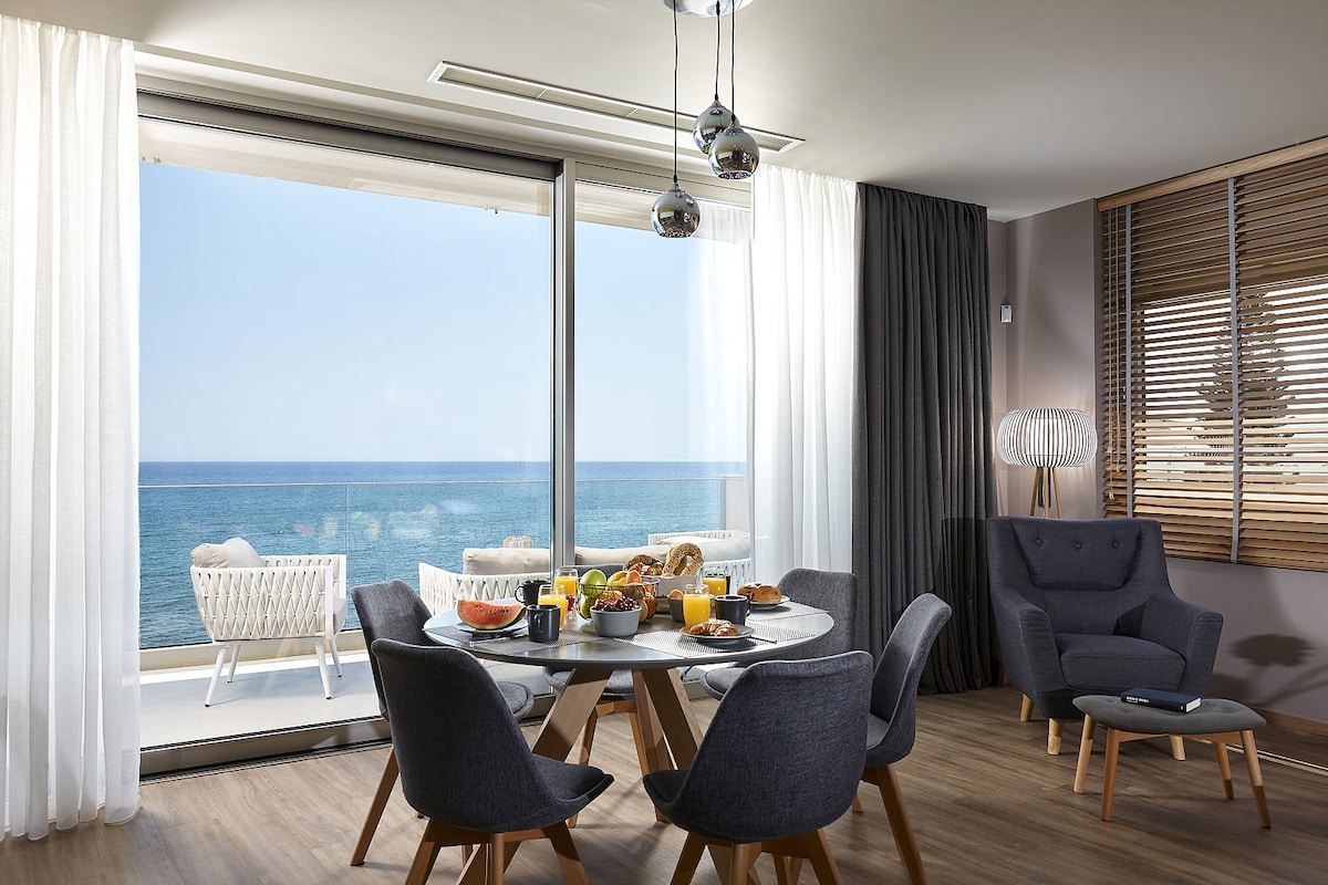 Escape sa Seafront Suites, isang pribadong hideaway sa tabi ng isang celestial blue sea sa Hersonissos nakamamanghang Beach Rivera. Matatagpuan sa isang tahimik at liblib na bay na may mga malalawak na tanawin at sunset na nasisilaw, ang iba pang bahagi ng mundo ay hindi umiiral, na nagbibigay sa iyo ng kalayaan na palayain ang iyong mga inhibisyon at mabuhay sa ngayon. Ang aming marangyang beachfront Suite ay moderno at minimalist na may sobrang komportableng mga kuwartong pambisita, mga earth tone at modernong touch para mapaginhawa ang isip at magpainit ng kaluluwa.